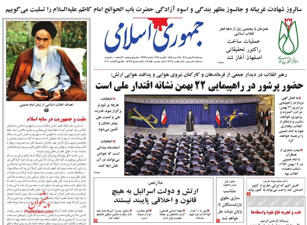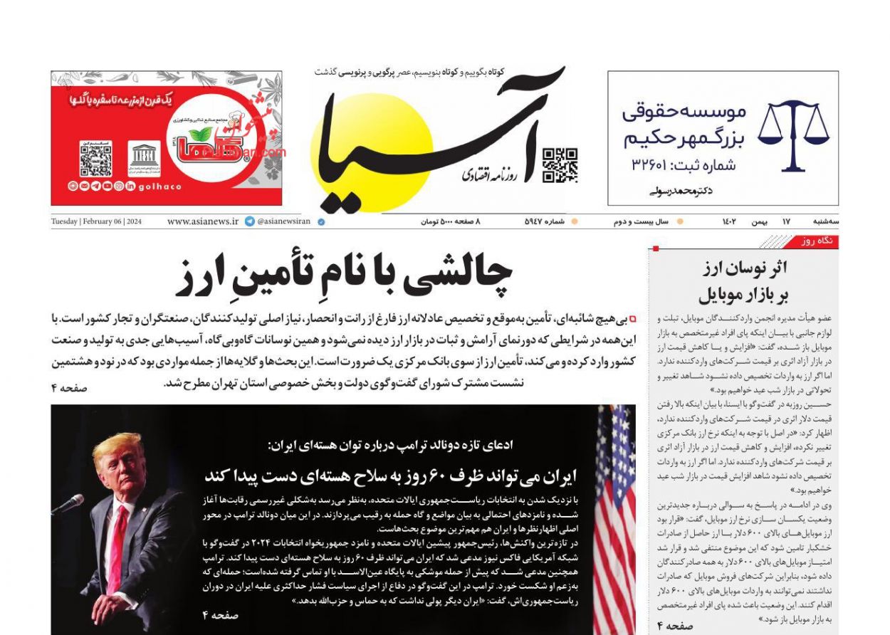 صفحه نخست روزنامه‌های امروز سه شنبه 17 بهمن 1402