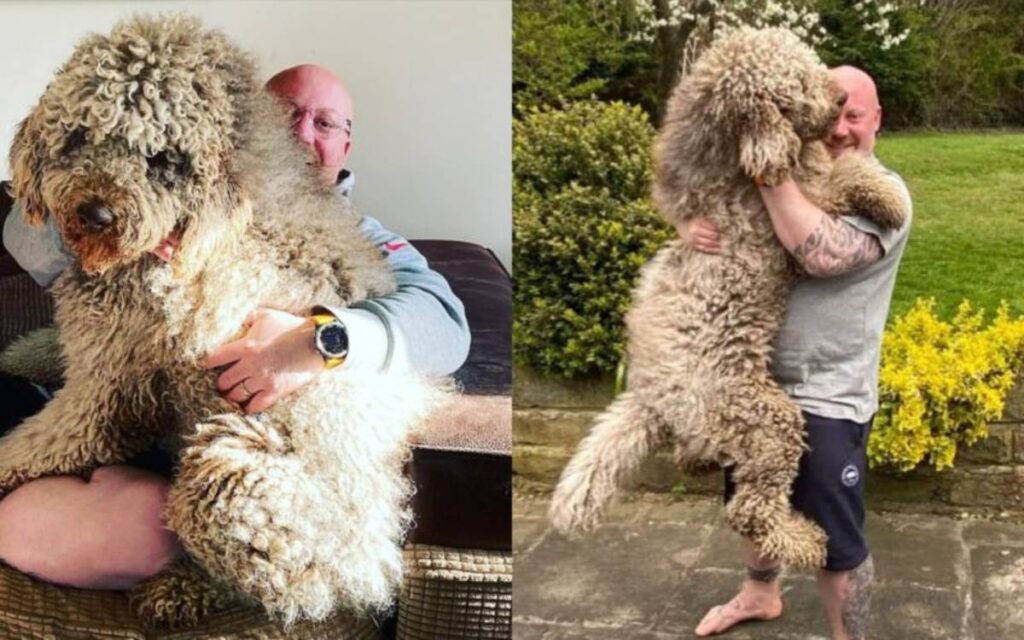 سگ ۲ متری که فکر میکند هنوز تولهای کوچک است و دوست دارد روی پای صاحبش بنشیند