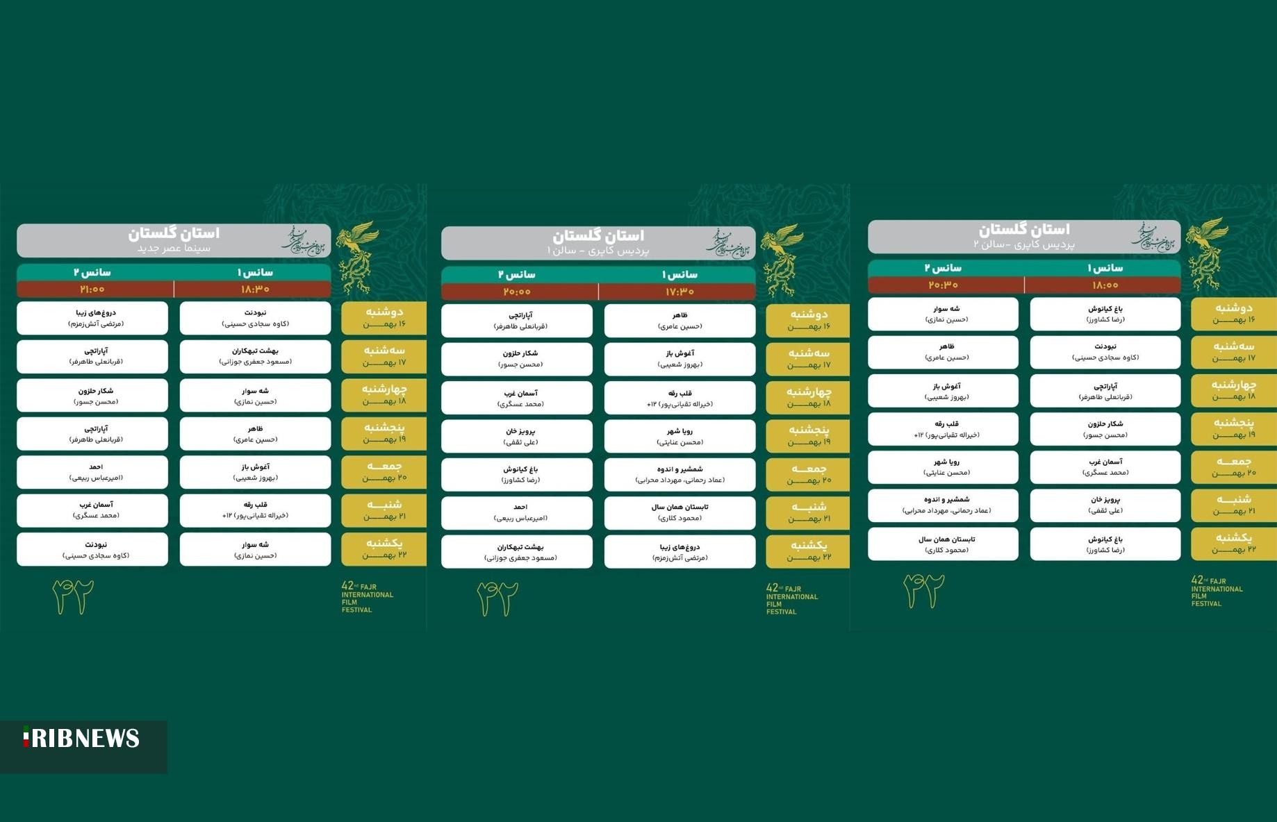 جدول اکران فیلمهای جشنواره چهل و دوم فجر در گرگان