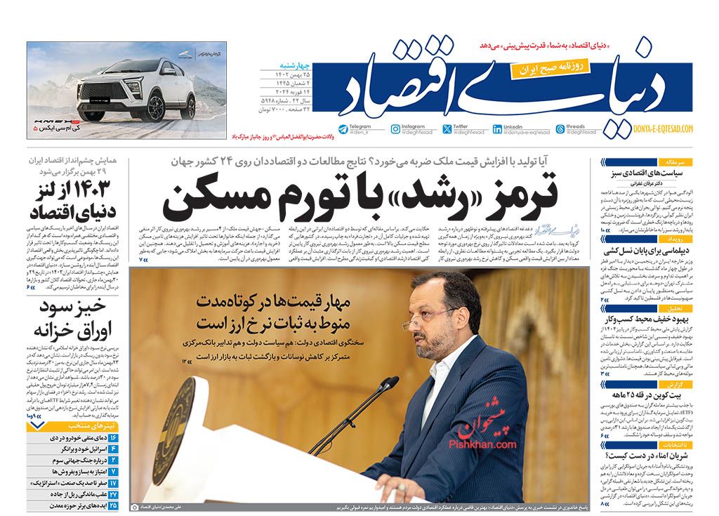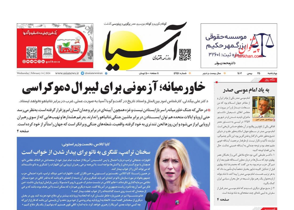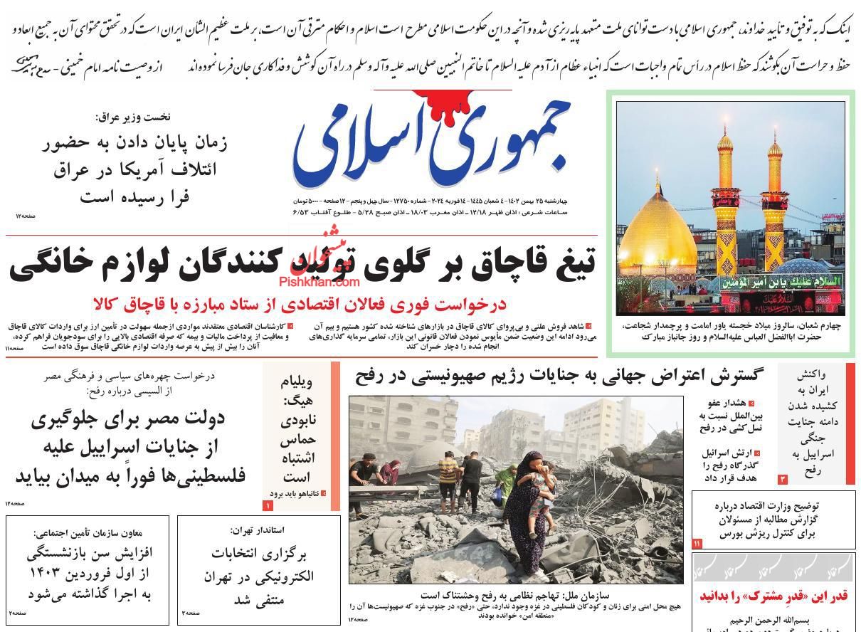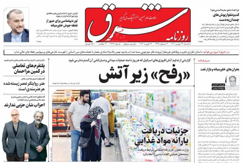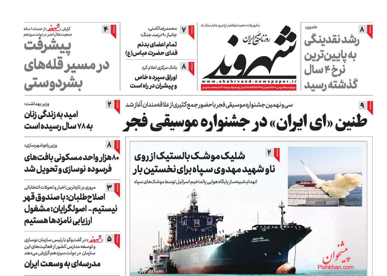 صفحه نخست روزنامه‌های امروز چهارشنبه 25 بهمن 1402