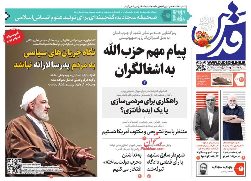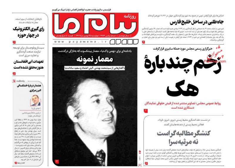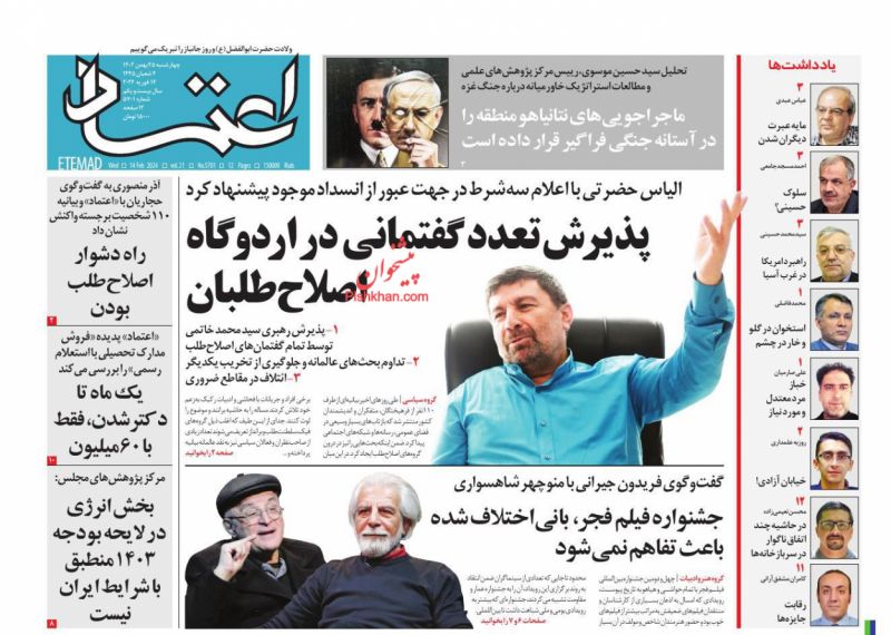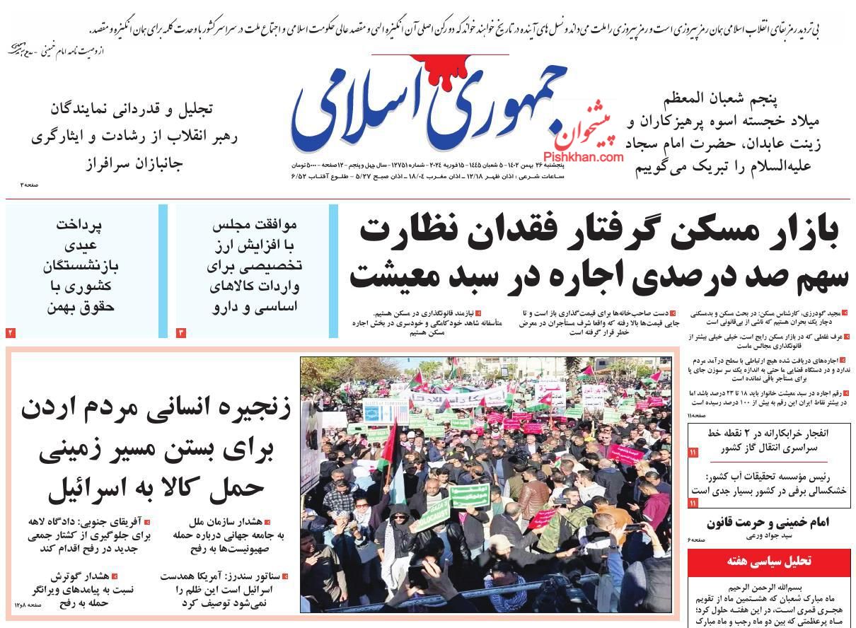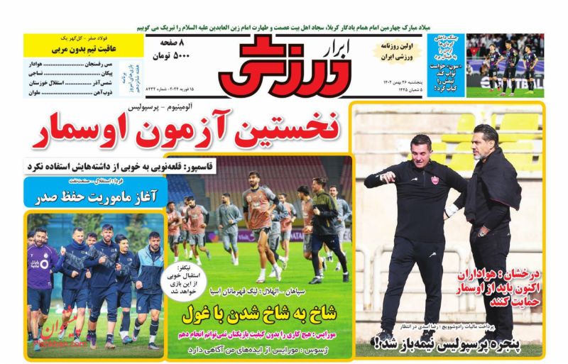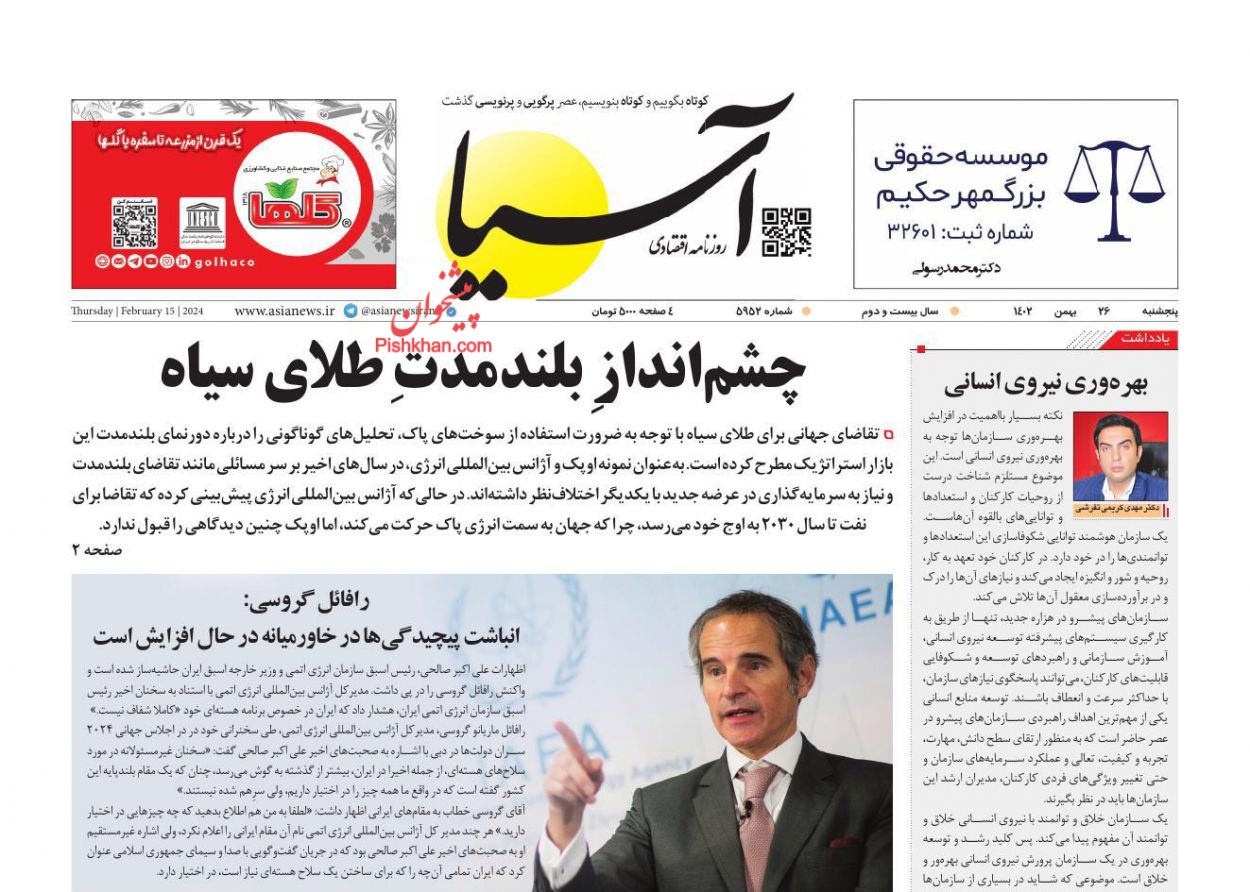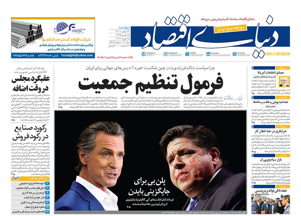 صفحه نخست روزنامه‌های امروز پنجشنبه 26 بهمن 1402