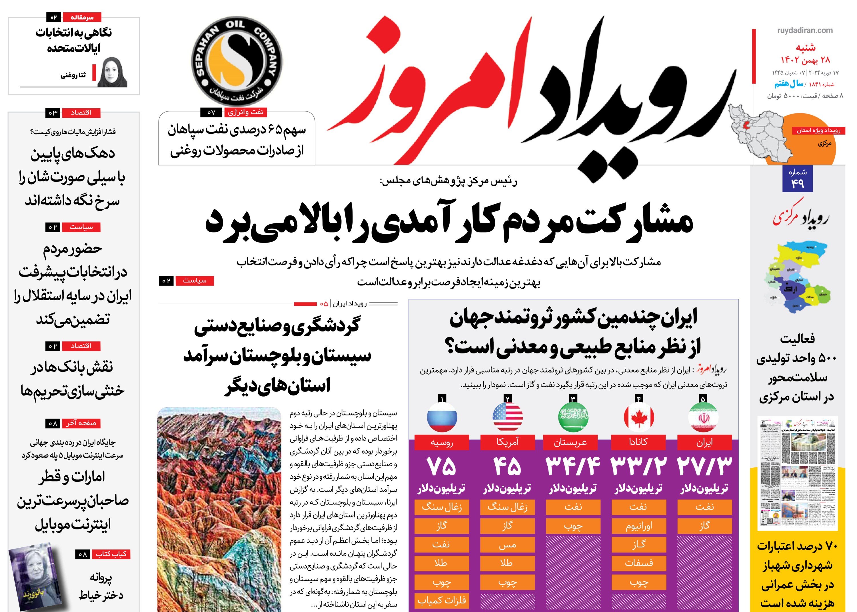 کد: 300750 | 28 بهمن 1402 ساعت 03:00 روزنامه رویداد امروز شنبه ۲۸ بهمن ۱۴۰۲ اشتراک گذاری گزارش خطا × اشتراک گذاری مطلب: روزنامه رویداد امروز شنبه ۲۸ بهمن ۱۴۰۲ فیسبوک اینستاگرام تلگرام ایکس (توییتر) ایتا بله روبیکا × گزارش خطا برای گزارش خطا با پست الکترونیکی: ruydadiran[at]gmail.com در ارتباط باشید