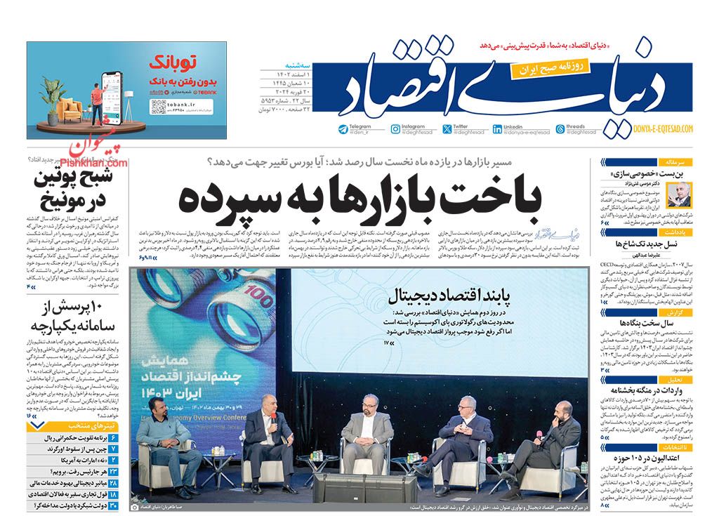 صفحه نخست روزنامه‌های امروز سه شنبه 1 اسفند 1402