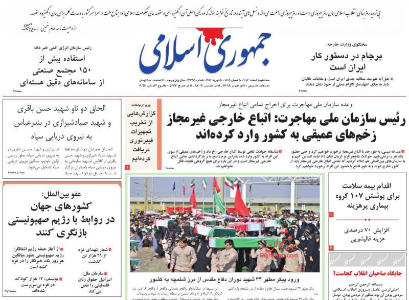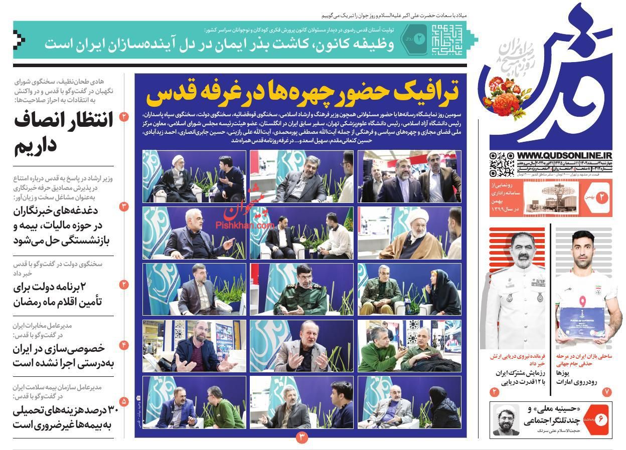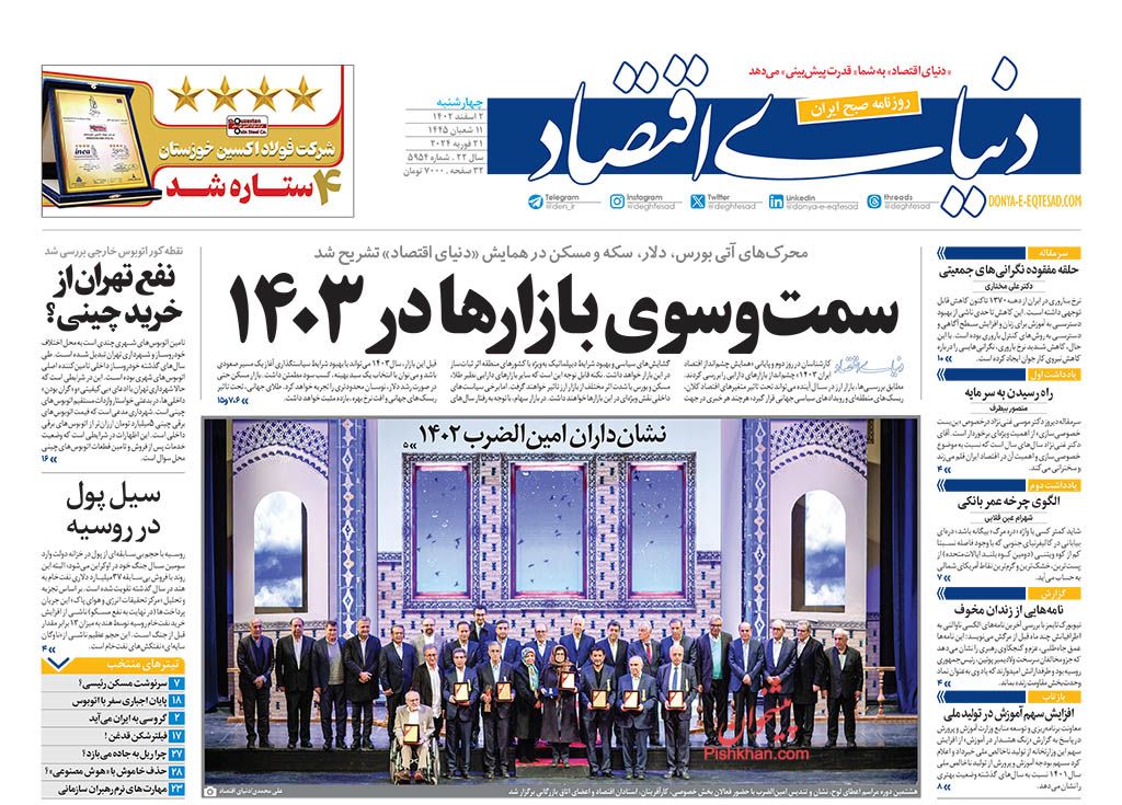 صفحه نخست روزنامه‌های امروز چهارشنبه 2 اسفند 1402