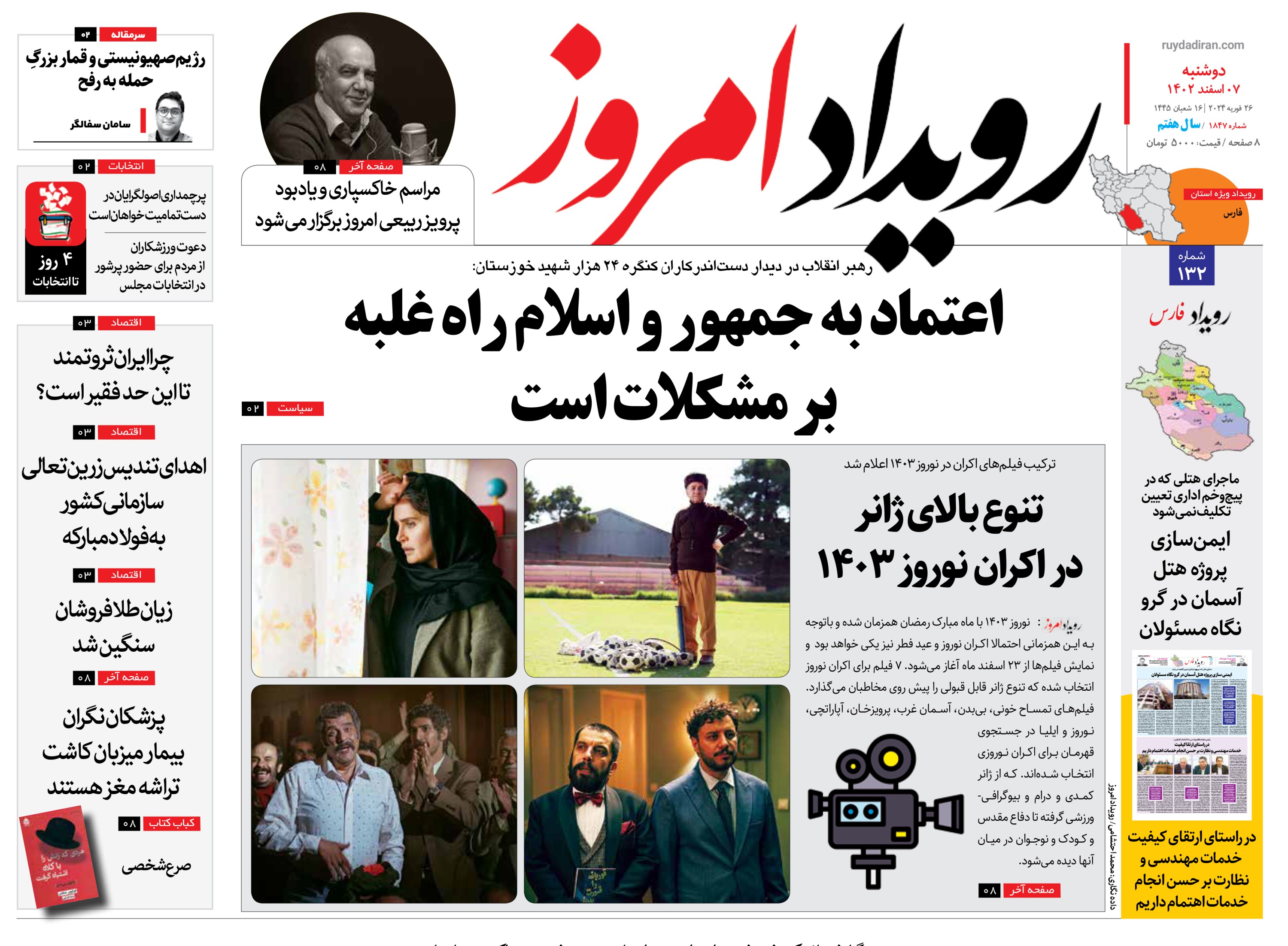 روزنامه رویداد امروز دوشنبه ۷ اسفند ۱۴۰۲