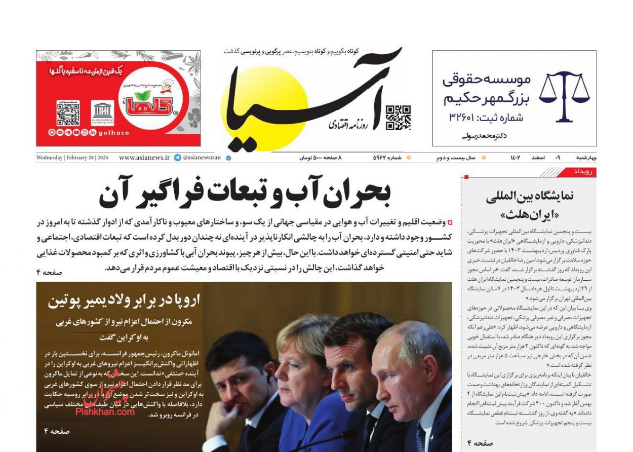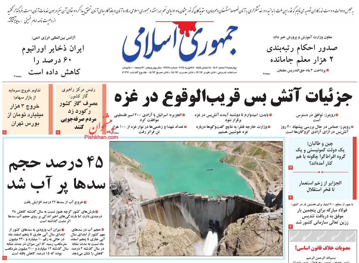 صفحه نخست روزنامه‌های امروز چهارشنبه 9 اسفند 1402