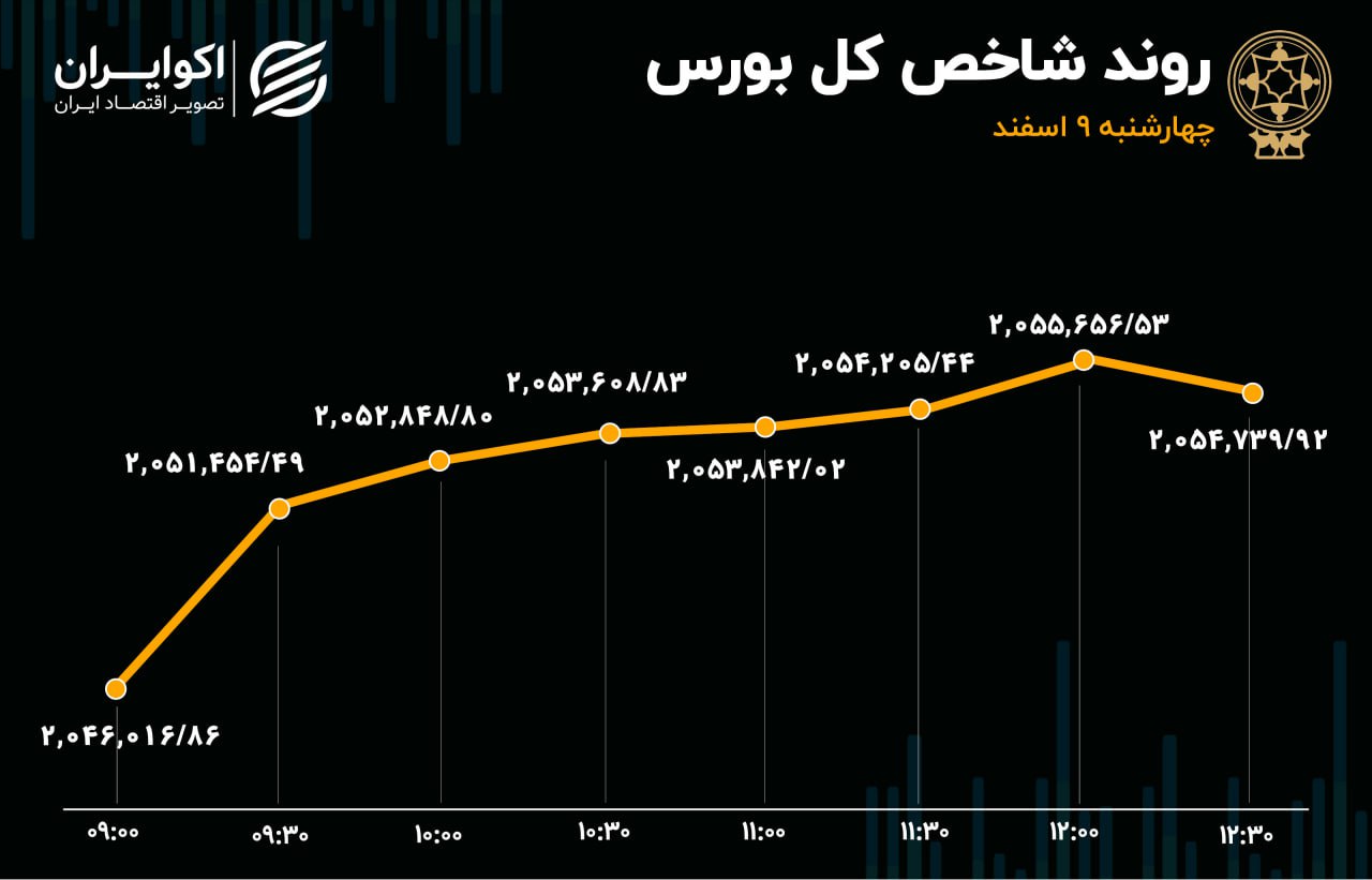به گزارش اکوایران، در معاملات روز چهارشنبه نهم اسفند ماه 1402، شاخص کل بورس تهران 8 هزار و 722 واحد نسبت به روز کاری گذشته بالاتر ایستاد و به سطح 2 میلیون و 54 هزار و 739 واحد رسید.