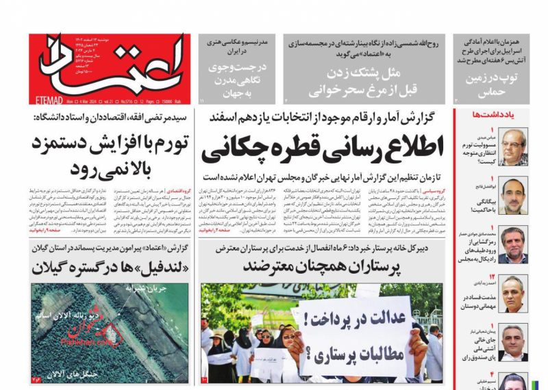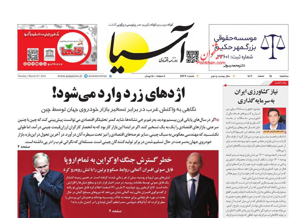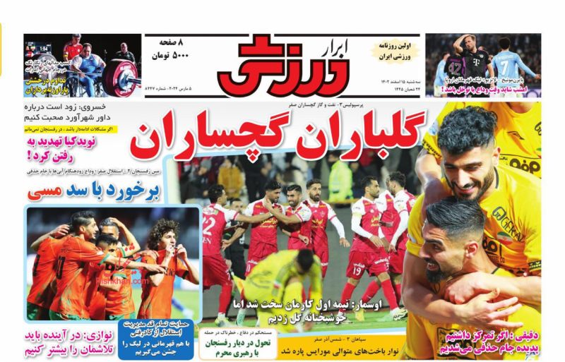 صفحه نخست روزنامه‌های امروز سه شنبه 15 اسفند 1402