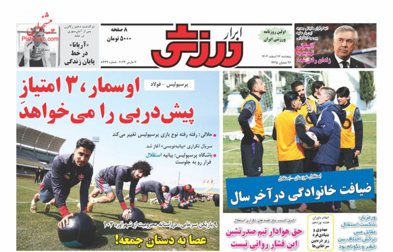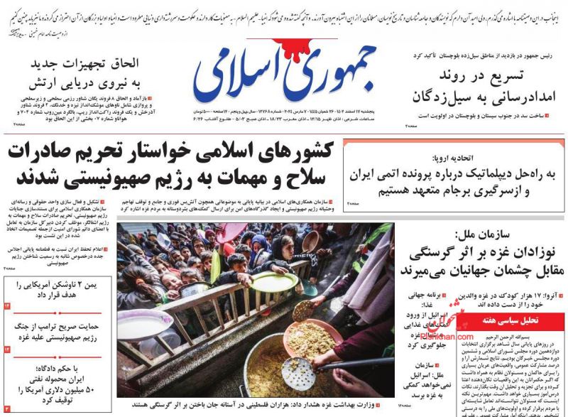 کد: 306877 | 17 اسفند 1402 ساعت 06:29 صفحه نخست روزنامههای امروز پنجشنبه 17 اسفند 1402 صفحه نخست روزنامههای امروز پنجشنبه 17 اسفند 1402 روزنامه های سراسری مطبوعات کشور روزنامه اشتراک گذاری گزارش خطا × اشتراک گذاری مطلب: صفحه نخست روزنامههای امروز پنجشنبه 17 اسفند 1402 فیسبوک اینستاگرام تلگرام ایکس (توییتر) ایتا بله روبیکا × گزارش خطا برای گزارش خطا با پست الکترونیکی: ruydadiran[at]gmail.com در ارتباط باشید