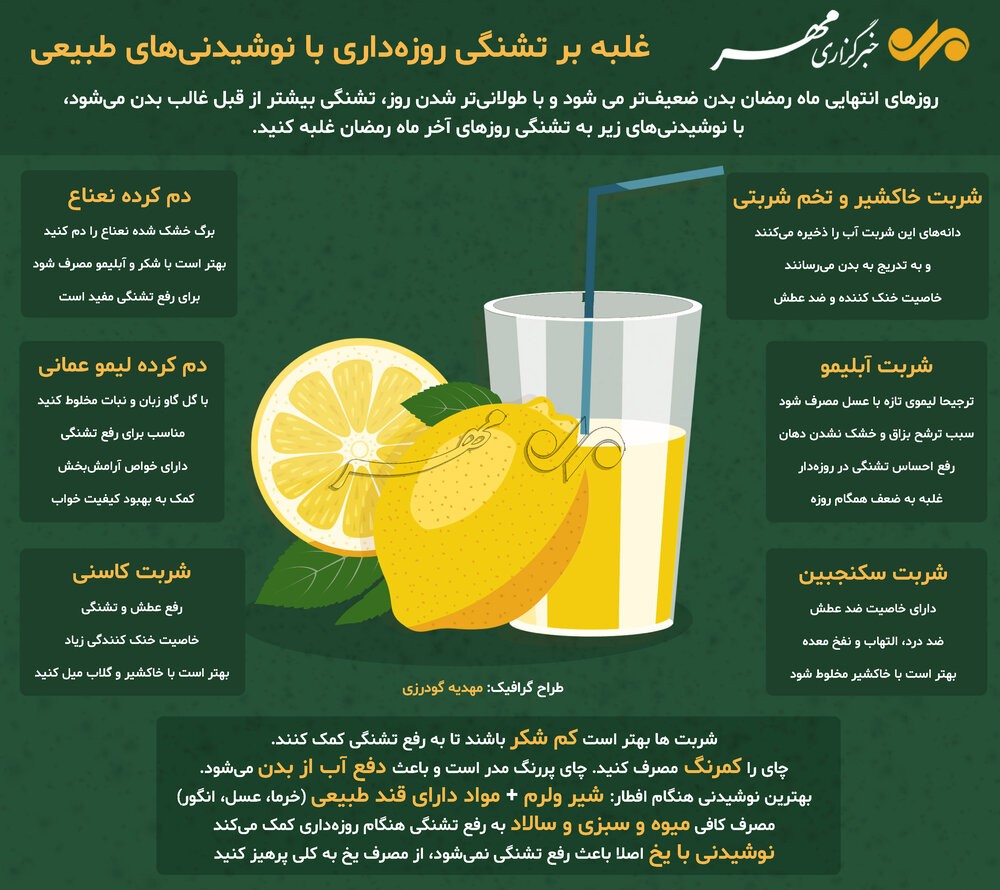 غلبه بر تشنگی روزه داری با نوشیدنی های طبیعی