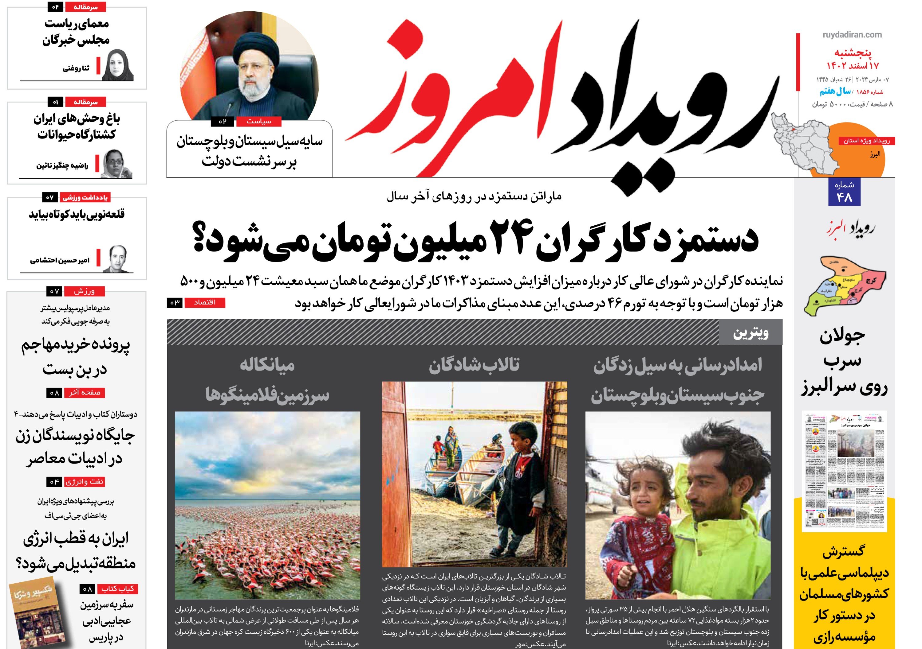 روزنامه رویداد امروز پنج شنبه ۱۷ اسفند ۱۴۰۲