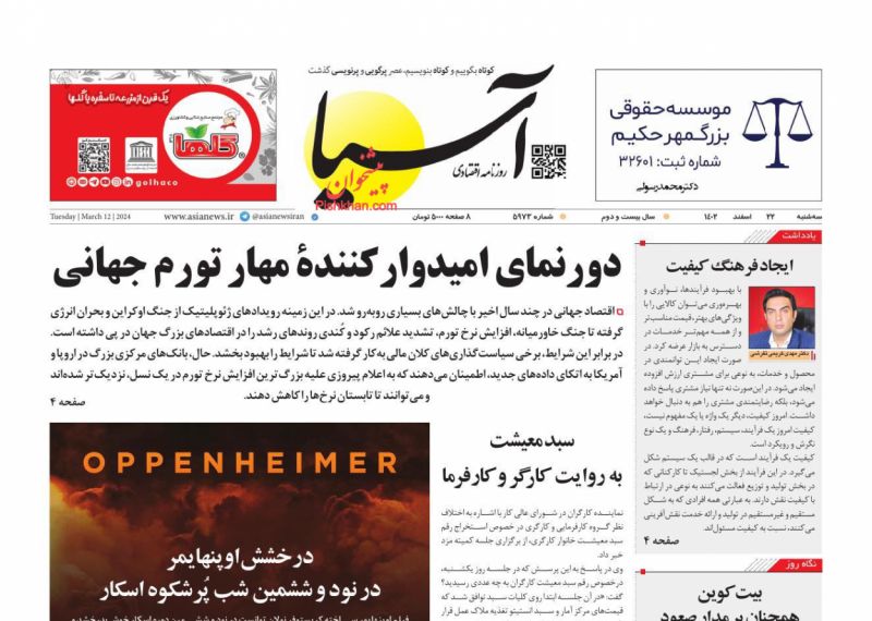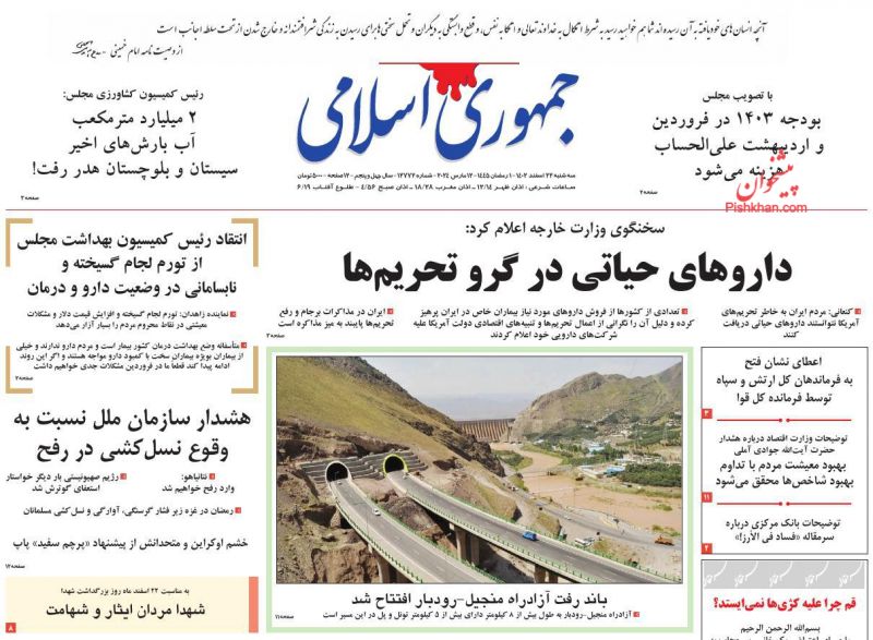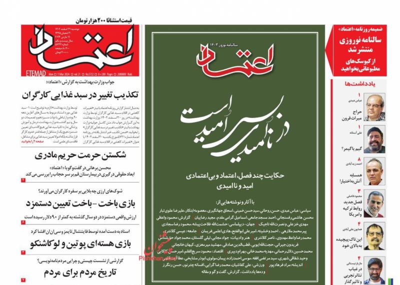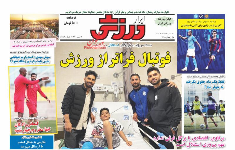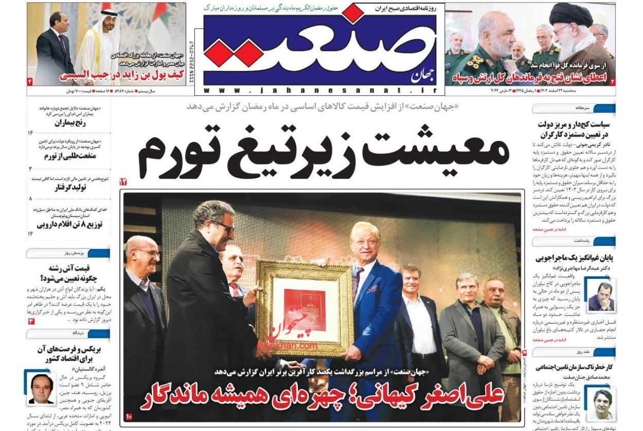 صفحه نخست روزنامه‌های امروز سه شنبه 22 اسفند 1402