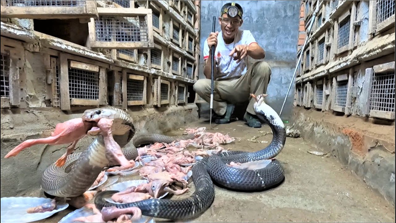(ویدئو) فرآیند پرورش و غذادهی به هزاران مار کبرای سمی توسط کشاورز ویتنامی