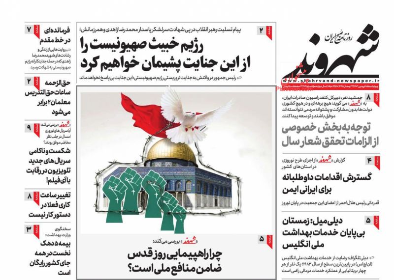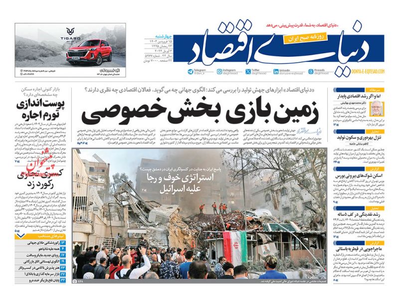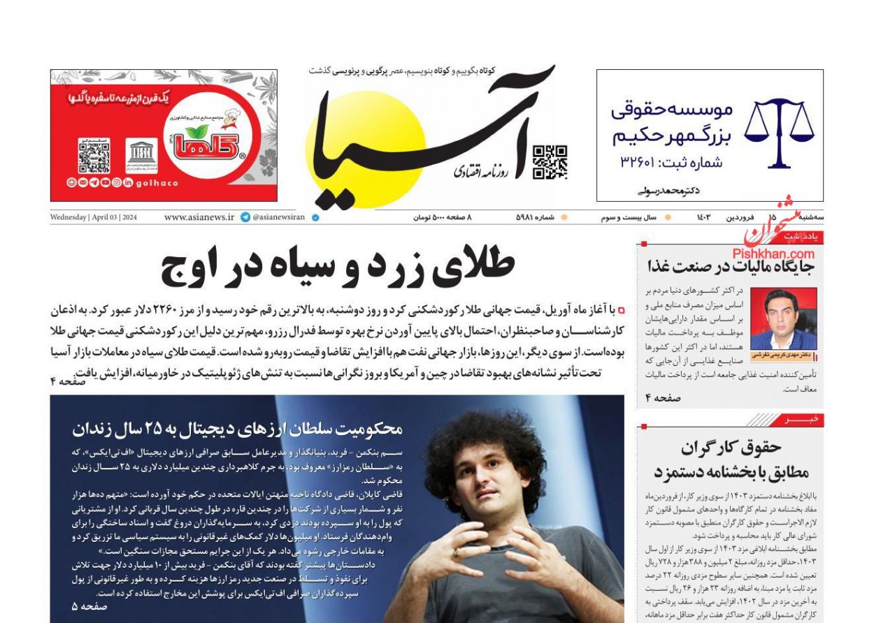 صفحه نخست روزنامه‌های امروز چهارشنبه 15 فروردین1403