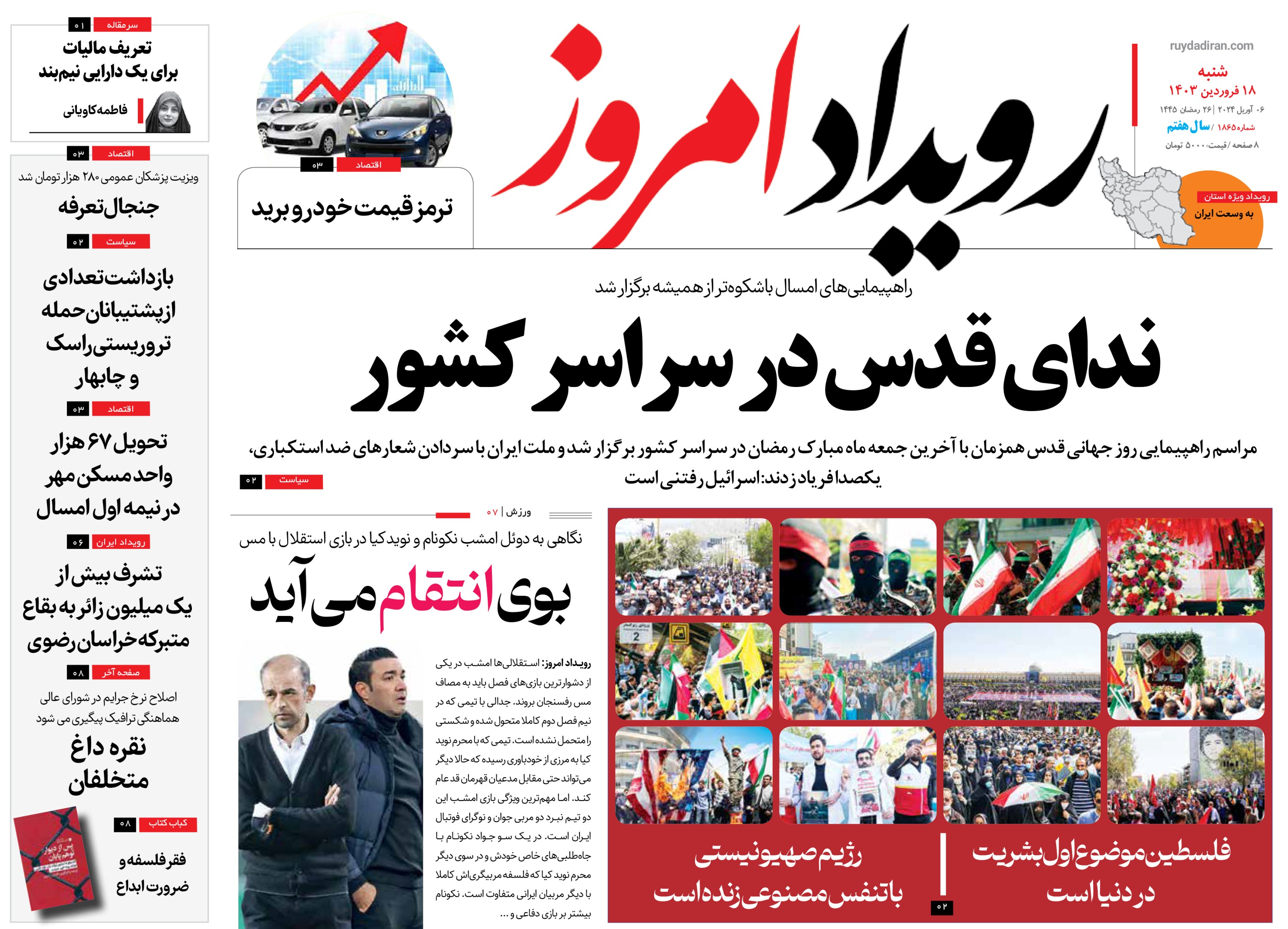 روزنامه رویداد امروز شنبه ۱۸ فروردین ۱۴۰۲