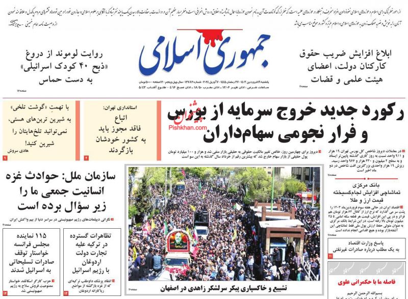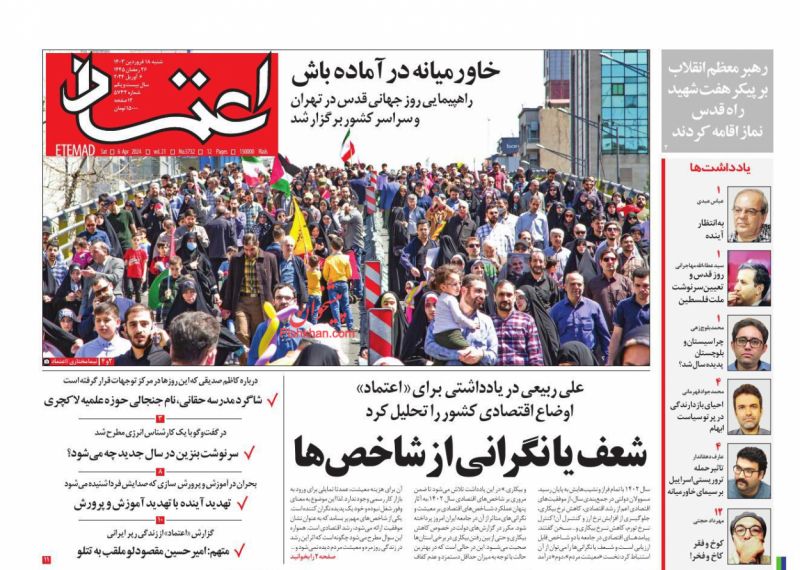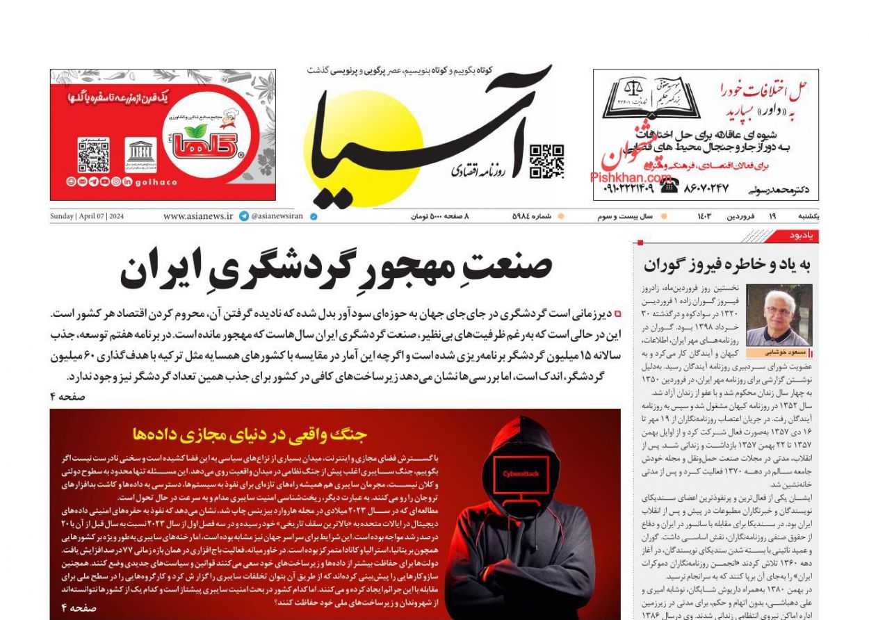 صفحه نخست روزنامه‌های امروز یکشنبه 19 فروردین1403