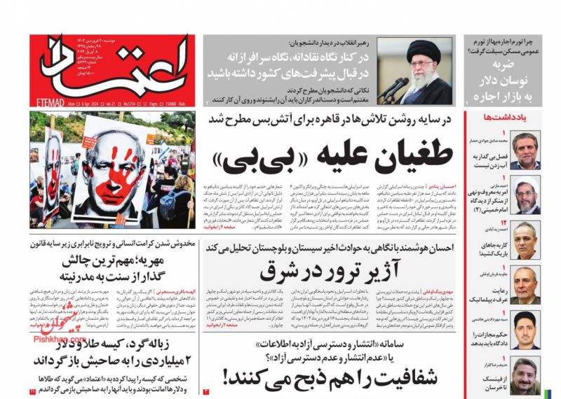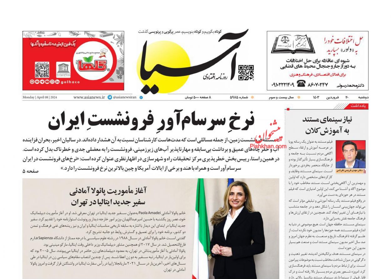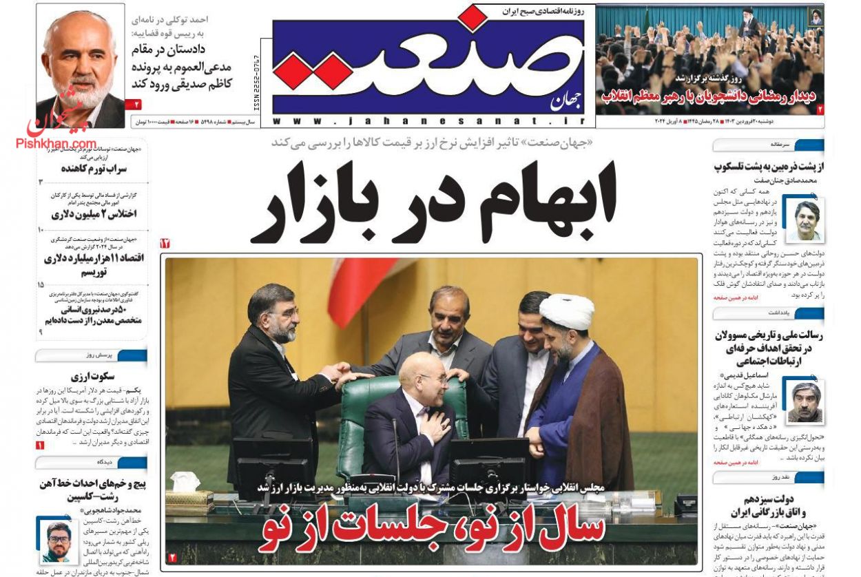 صفحه نخست روزنامه‌های امروز دوشنبه 20 فروردین1403