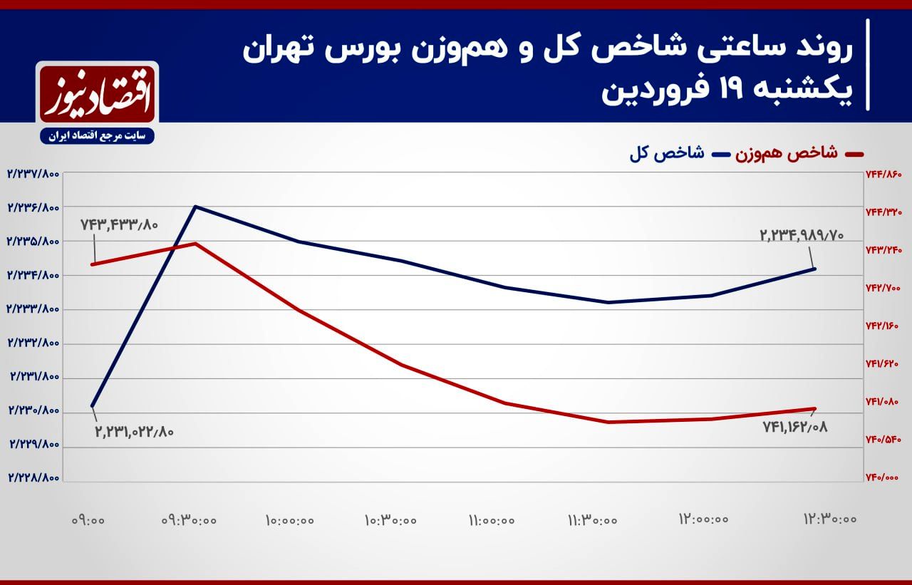 اقتصادنیوز: بورس تهران روز یکشنبه با کاهش تراز شاخص‌ هم‌وزن در کنار رشد شاخص کل و کاهش ارزش معاملات خرد مواجه بود. بازار سهام دیروز شاهد خروج جریان پول حقیقی از موقعیت‌های سهامی بود.