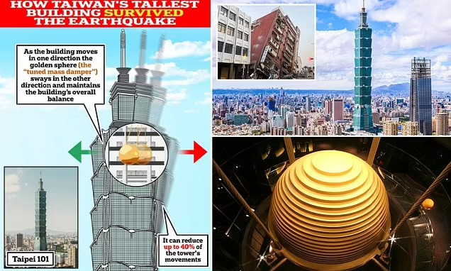 اما در میان این هرج و مرج، فیلم های منتشرشده از بلندترین ساختمان تایوان، یک آسمانخراش ۱.۸ میلیارد دلاری به نام «تایپه ۱۰۱» را نشان می دهند که به آرامی مانند درختی هنگام وزش نسیم تکان می خورد.