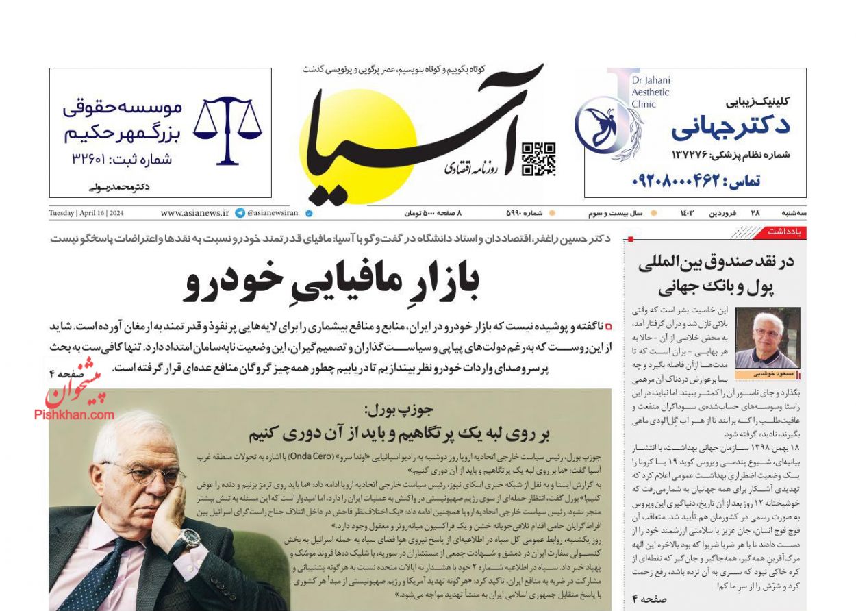 کد: 319481 | 28 فروردین 1403 ساعت 06:07 صفحه نخست روزنامههای امروز سه شنبه 28 فروردین1403 صفحه نخست روزنامههای امروز سه شنبه 28 فروردین1403 روزنامه های سراسری مطبوعات کشور روزنامه اشتراک گذاری گزارش خطا × اشتراک گذاری مطلب: صفحه نخست روزنامههای امروز سه شنبه 28 فروردین1403 فیسبوک اینستاگرام تلگرام ایکس (توییتر) ایتا بله روبیکا × گزارش خطا برای گزارش خطا با پست الکترونیکی: ruydadiran[at]gmail.com در ارتباط باشید