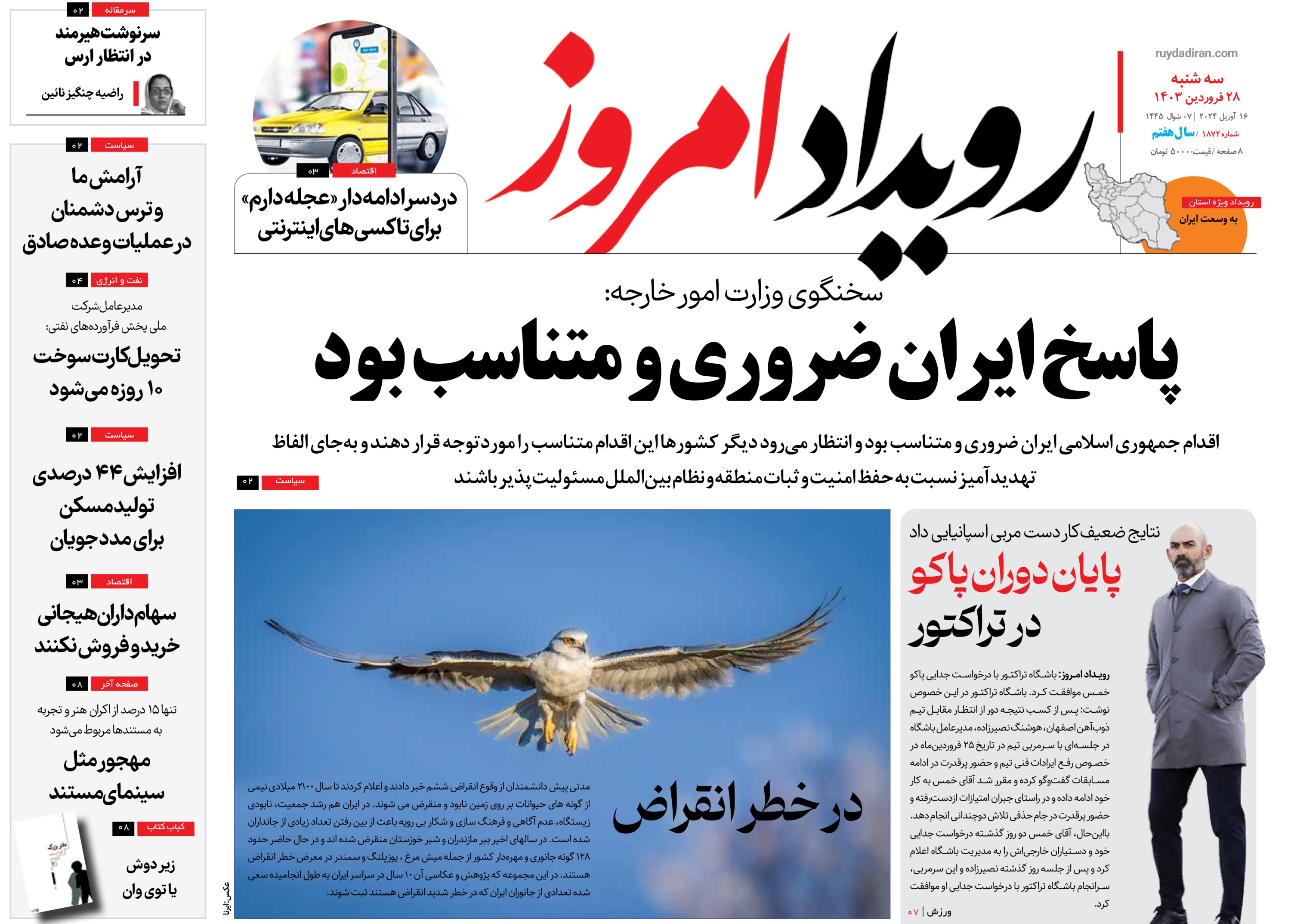 کد: 319788 | 28 فروردین 1403 ساعت 00:34 روزنامه رویداد امروز سه شنبه ۲۸ فروردین ۱۴۰۳ اشتراک گذاری گزارش خطا × اشتراک گذاری مطلب: روزنامه رویداد امروز سه شنبه ۲۸ فروردین ۱۴۰۳ فیسبوک اینستاگرام تلگرام ایکس (توییتر) ایتا بله روبیکا × گزارش خطا برای گزارش خطا با پست الکترونیکی: ruydadiran[at]gmail.com در ارتباط باشید