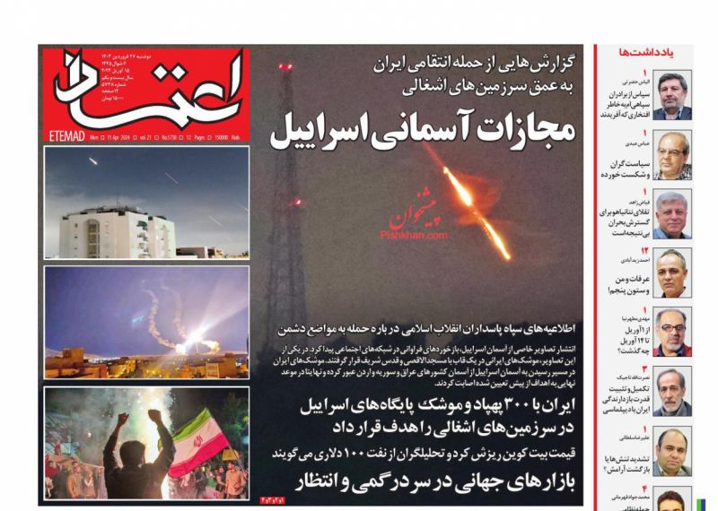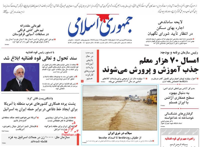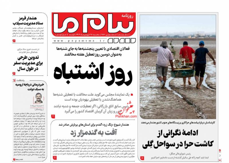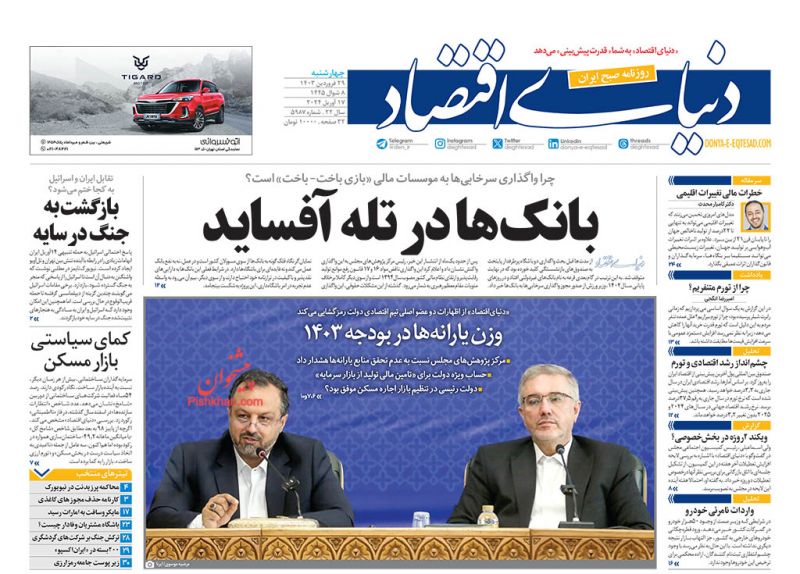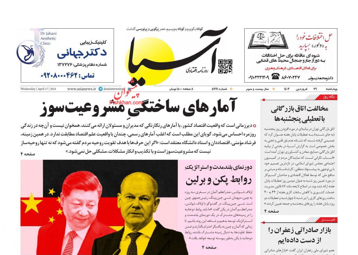 صفحه نخست روزنامه‌های امروز چهارشنبه 29 فروردین1403