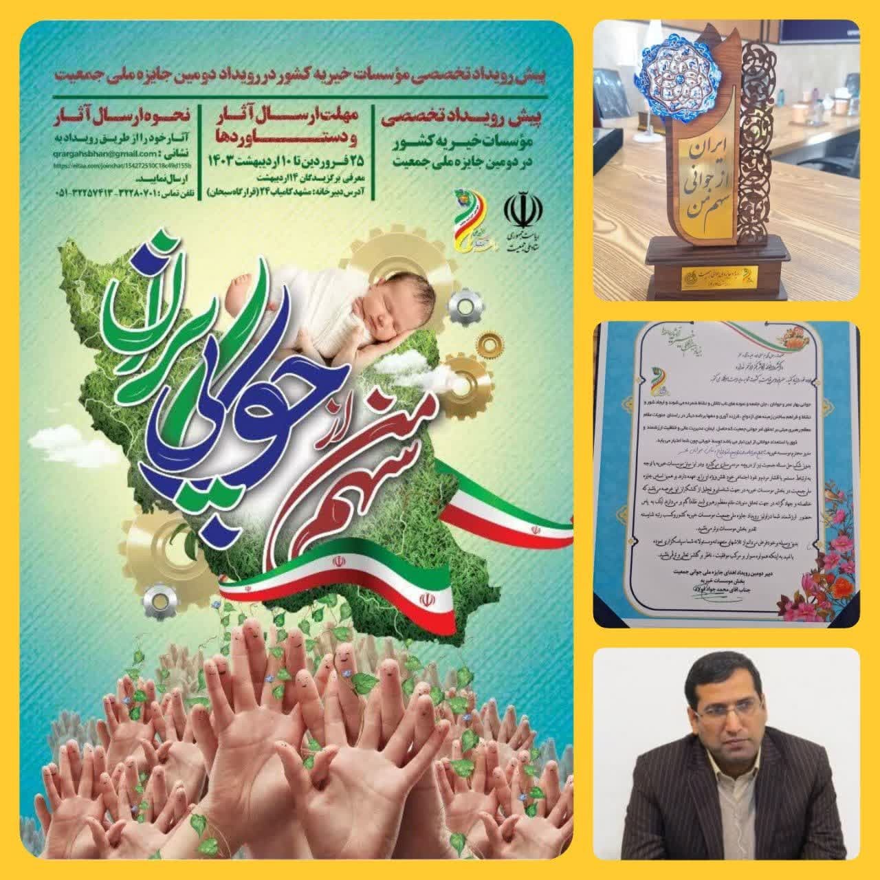 شایان ذکر است مراسم اختتامیه روز شنبه در تهران برگزار و برگزیدگان همزمان با دهه کرامت و میلاد با سعـادت امـام هشتم امـامپ رضا (ع)در مشهـد مقـدس تجلیل می شـوند.