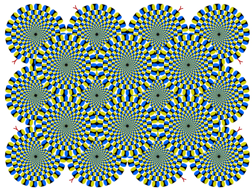 فرادید| تصویری که در بالا میبینید نامش توهم «مارهای چرخان» است؛ این تصویر در واقع کاملا ثابت است اما هیچ کس نیست که به آن نگاه کند و چرخشهای خیرهکننده (و برای بعضیها تهوعآور) آن را نبیند.