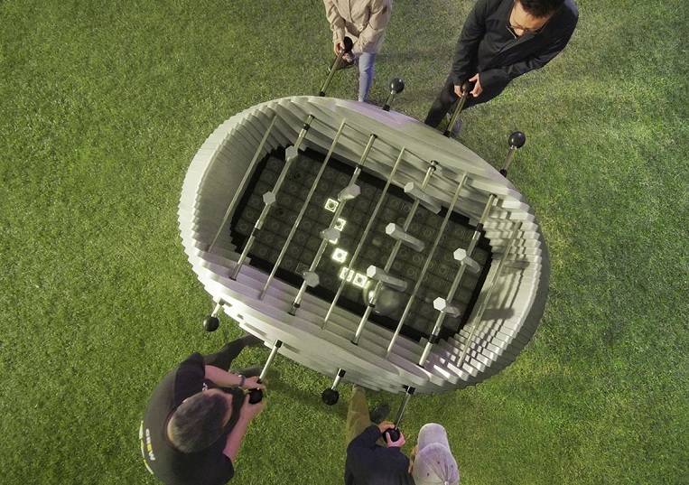 فرادید| فوتبال دستی جدید با نام هاربِر کاپ (Harbour Cup) ساخت گروه معماری LAAB است، یک اثر هنری تعاملی که در «نمایشگاه علم در هنر» در امتداد تفرجگاه بندرگاه مرکزی هنگ کنگ به نمایش گذاشته شده است.