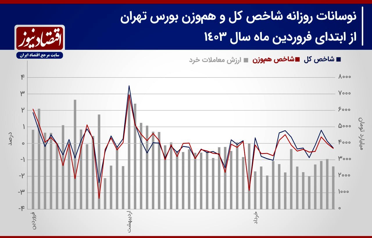 بازار سهام، سومین هفته خرداد ماه را نیز با روند نزولی هفتههای ابتدایی خرداد ماه آغاز کرد. روند نزولی و رکودی هفتههای اخیر بورس تهران سازمان بورس را واداشت تا با بسته حمایتی چهار مصوبهای به داد بورس تهران و فعالان این بازار برسد. با وجود انتشار مصوبه سازمان بورس، معاملات سهامی فقط دو روز معاملاتی مثبت در این هفته برای شاخص کل رقم زد و حتی شاخص هموزن تنها در روز اول پس از انتشار مصوبه رشد کرد و چهار روز دیگر هفته را با کاهش تراز پشت سر گذاشت. آمار معاملات هفته سوم خرداد ماه تفاوت زیادی با آمار معاملات دو هفته دیگر خرداد ماه نداشته است و حتی خروج جریان پول حقیقی در این هفته بیشتر از هفتههای قبل بوده است.