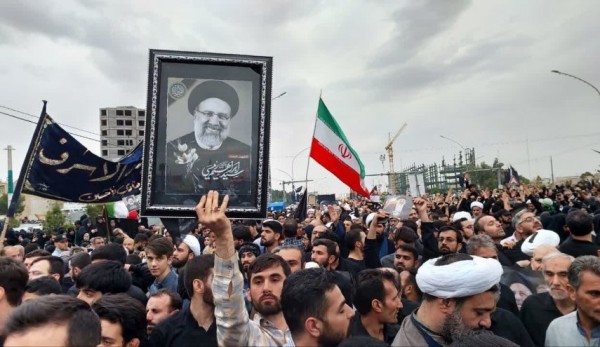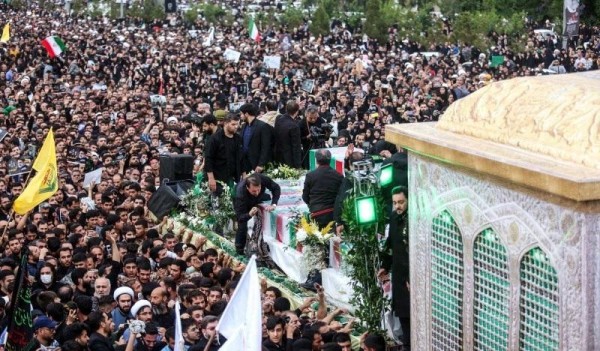 جمعیتی که تا لحظاتی پیش در چهره هایشان اضطرب و پریشانی دیده می شد اکنون اشک پهنای صورتشان را گرفته است ، صدای مداحی از بلندگوهای نصب شده در این مسیر به گوش می رسد، جمعیت به دنبال خودروی حامل رئیس جمهور از همه طرف میدوند و بر سر و صورت می زنند.