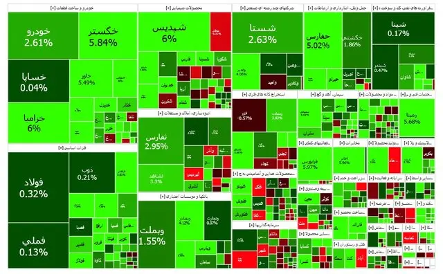 فارس، فولاد و وغدیر بیشترین تاثیر مثبت را بر شاخص کل داشتند. ذوب، شستا فولاد نیز از نمادهای پرتراکنش امروز بودند.