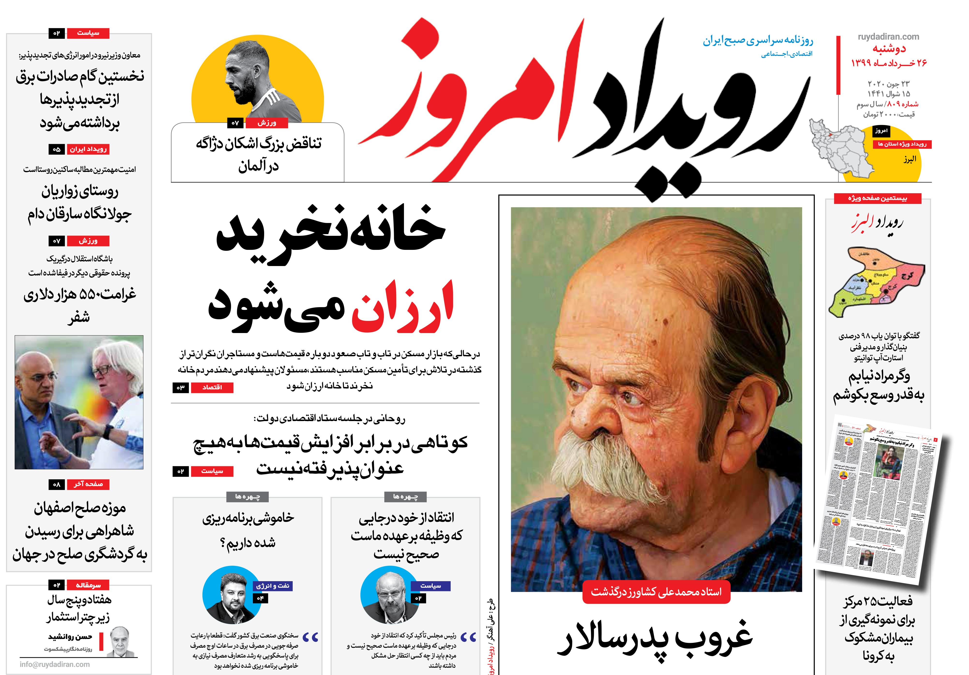 کد: 35579 | 26 خرداد 1399 ساعت 04:29 روزنامه رویداد امروز دوشنبه ۲۶ خرداد ۱۳۹۹ روزنامه رویداد امروز رویداد ایران اصفهان اشتراک گذاری گزارش خطا × اشتراک گذاری مطلب: روزنامه رویداد امروز دوشنبه ۲۶ خرداد ۱۳۹۹ فیسبوک اینستاگرام تلگرام ایکس (توییتر) ایتا بله روبیکا × گزارش خطا برای گزارش خطا با پست الکترونیکی: ruydadiran[at]gmail.com در ارتباط باشید