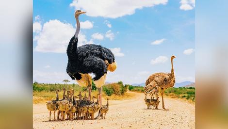 ( تصاویر) جوجه شترمرغ؛ سایه پدر و مادر بالای سر!