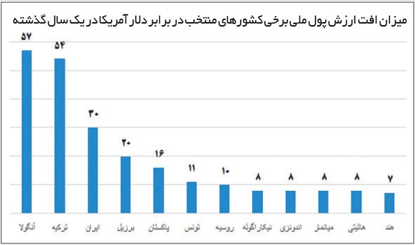 تازهترین یافتههای آماری نشان میدهد احتمالا کاهش ارزش ریال از یک عامل خارجی هم تأثیر پذیرفته است. تقویت ارزش برابری دلار آمریکا در ماههای اخیر در برابر ارزهای معتبر خارجی واقعیتی است که باعث شده تا نرخ برابری پول ملی کشورهای دارای سیستم ناکارآمد ارزی افت کند. لیر ترکیه ازجمله ارزهایی است که این روزها با افت شدید مواجه شده و نرخ ارزهای خارجی با سقوط چشمگیر ارزش لیر در بازار ترکیه ساعتی تغییر کند. ازجمله دلایل سقوط لیر ترکیه افزایش تنش سیاسی بین آنکارا و واشنگتن بوده است. رجب طیباردوغان، رئیسجمهوری ترکیه روز گذشته در واکنش به کاهش این موضوع بدون توجه به واقعیتهای اقتصادی دخالت عوامل وابسته و توطئه خارجی را مسبب این وضعیت دانست. بررسی روند تقویت ارزش دلار در یک سال گذشته نشان میدهد درطول یک نوار طولانی به موازات مرزهای ایران ارزش پول ملی ترکیه، ایران، پاکستان، هند، میانمار و اندونزی با بیشترین تنزل ارزش دربرابر دلار مواجه بودهاند. در این میان برخی کشورهای عمده صادرکننده نفت مانند روسیه، آنگولا و ونزوئلا هم در کنار ایران و اندونزی با کاهش ارزش پول ملیشان مواجه شدهاند. نکته جالب توجه آنکه اغلب این کشور به طور همزمان در روابط با آمریکا دچار بحران سیاسی و دیپلماتیک شدهاند این روند نشان میدهد با قدرت گرفتن دلار آمریکا، سیاستگذاران ارزی این کشورها برای مدیریت منابع ارزی خود باید تمهیدات خاصی را اتخاذ کنند. بنابراین بهنظر میرسد نباید تأثیر روندهای جهانی را بر افت ارزش ریال دربرابر دلار نادیده گرفت.