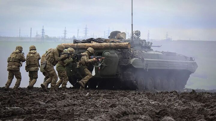 ببینید | لحظه حمله و انهدام واحدهای نظامی اوکراینی توسط ارتش روسیه بعد از پایش پهپادی