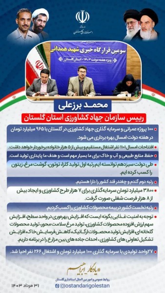 9. رئیس سازمان جهاد کشاورزی استان ( برزعلی) - 14 عصر