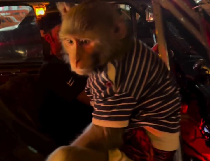 ببینید | دور دور یک میمون در خیابانهای تهران با پیکان قرمز!