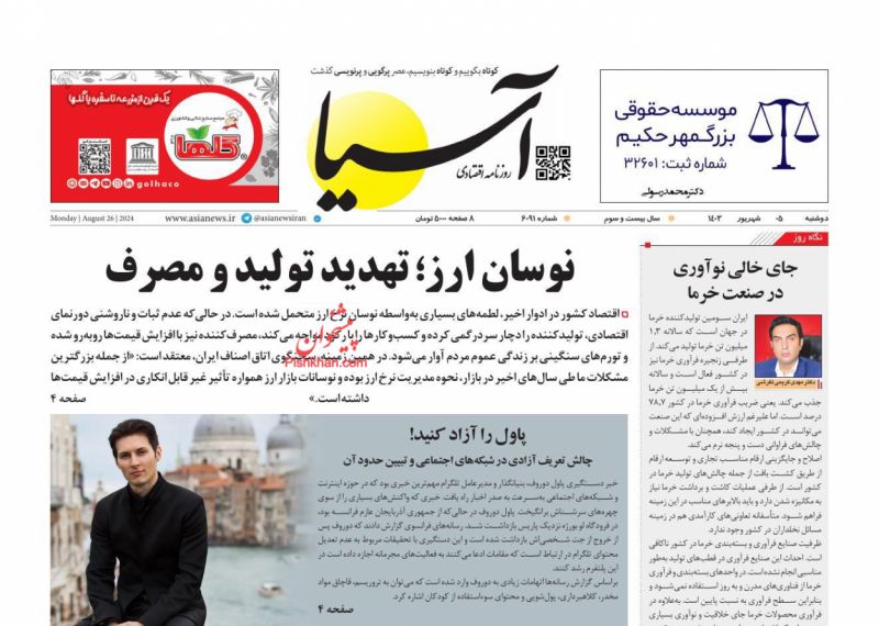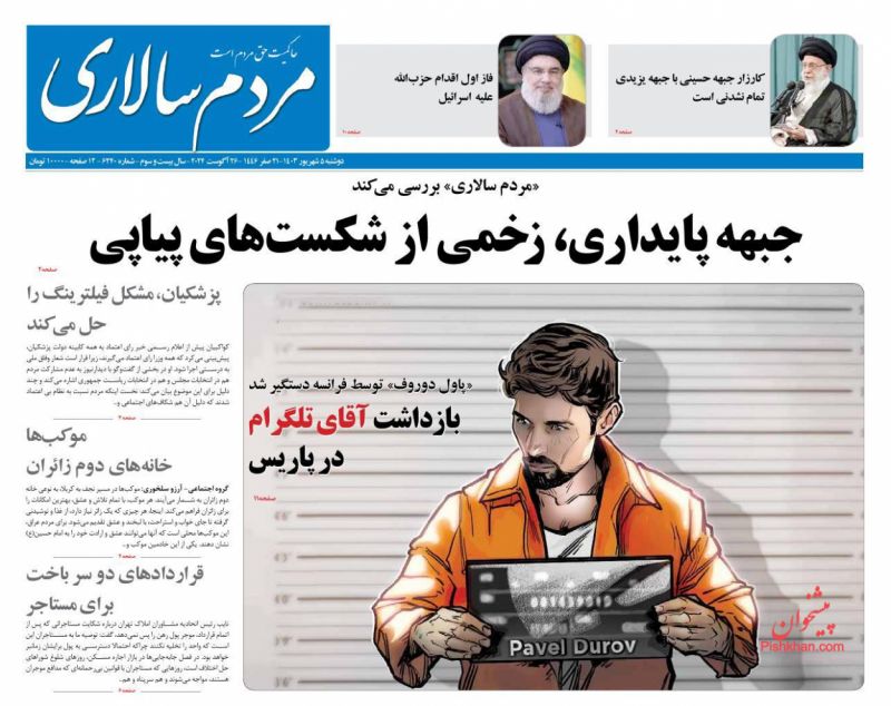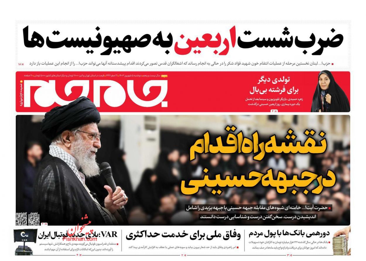 صفحه نخست روزنامه‌های امروز دوشنبه 5 شهریور 1403