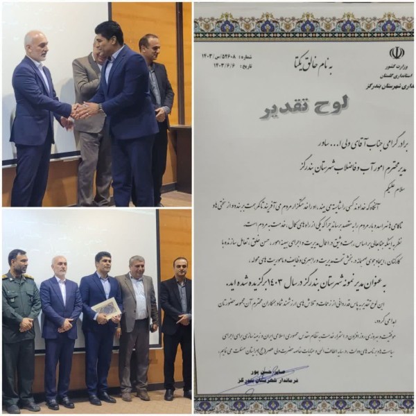 مدیر امور آب و فاضلاب بندرگز، به عنوان مدیر نمونه شهرستان بندرگز در سال 1403 برگزیده شد