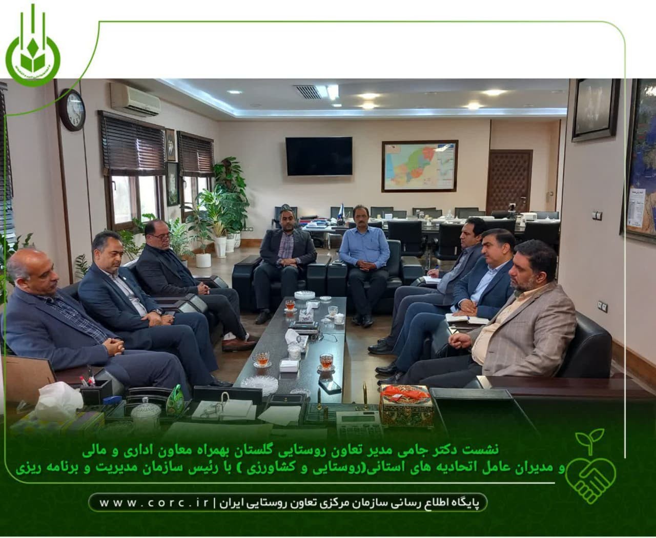 نشست مشترک دکتر جامی مدیر تعاون روستایی استان گلستان بهمراه عرب ابویی معاون اداری و مالی ،زنگانه مدیرعامل اتحادیه تعاون روستایی،جافر مدیرعامل اتحادیه مرغداران و لیاقی مدیرعامل اتحاديه دامداران با علیرضا نورانی رئیس سازمان مدیریت و برنامه ریزی ، ناهیدی معاون برنامه ریزی سازمان در دفتر سازمان مدیریت برگزار شد.