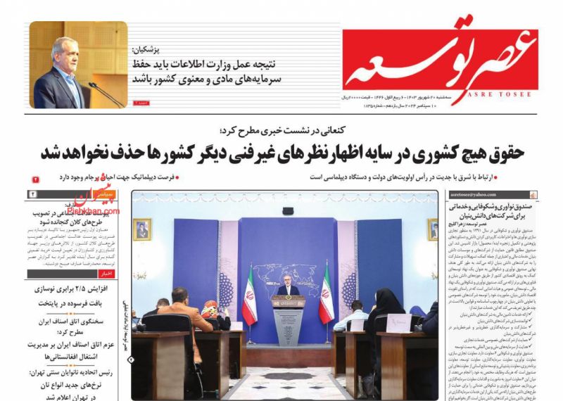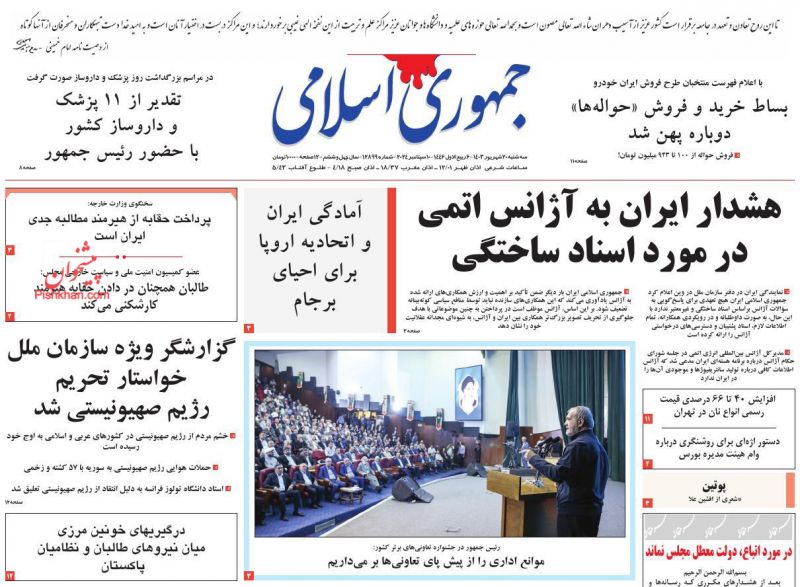 کد: 366774 | 20 شهریور 1403 ساعت 06:54 صفحه نخست روزنامههای امروز سه شنبه 20 شهریور 1403 صفحه نخست روزنامههای امروز سه شنبه 20 شهریور 1403 روزنامه های سراسری مطبوعات کشور روزنامه اشتراک گذاری گزارش خطا × اشتراک گذاری مطلب: صفحه نخست روزنامههای امروز سه شنبه 20 شهریور 1403 فیسبوک اینستاگرام تلگرام ایکس (توییتر) ایتا بله روبیکا × گزارش خطا برای گزارش خطا با پست الکترونیکی: ruydadiran[at]gmail.com در ارتباط باشید