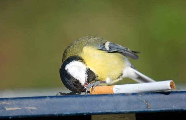 از آنجا که نیکوتین حاصل از تنباکو، گهگاه به عنوان دافع انگل برای آفات باغ استفاده میشود، این تیم آزمایش کردند که آیا پرندگان لانههایشان را با خردههای سیگار به این منظور میپوشانند یا خیر.