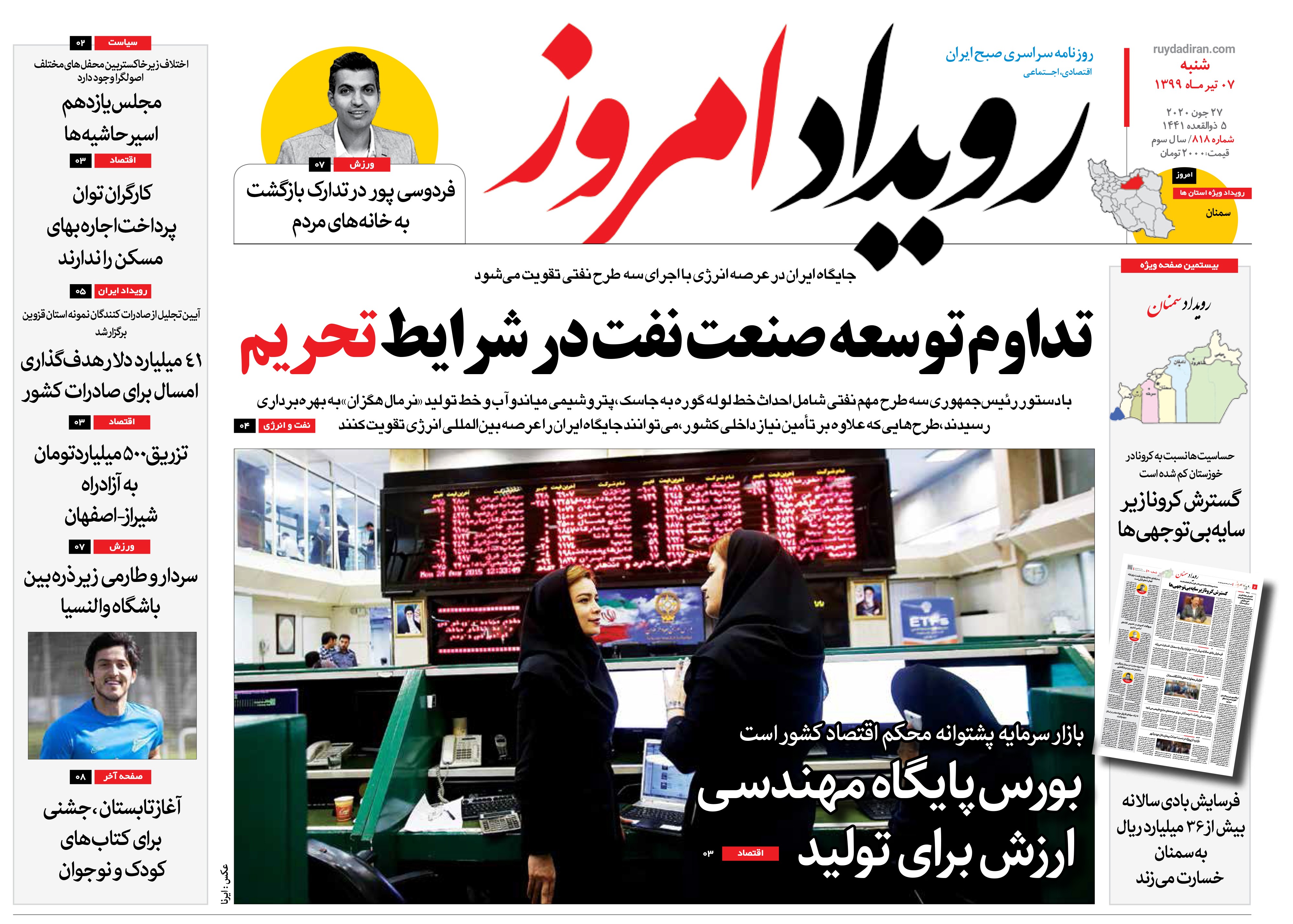 روزنامه رویداد امروز شنبه ۷ تیر ۱۳۹۹