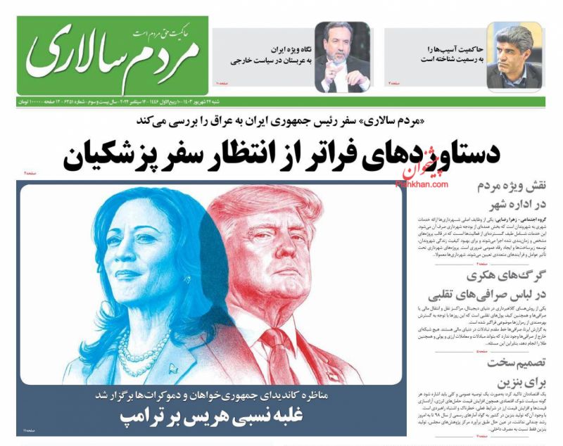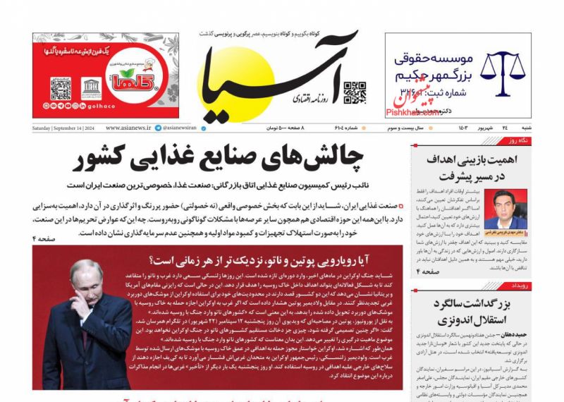 کد: 367674 | 24 شهریور 1403 ساعت 06:22 صفحه نخست روزنامههای امروز شنبه 24 شهریور 1403 صفحه نخست روزنامههای امروز شنبه 24 شهریور 1403 روزنامه های سراسری مطبوعات کشور روزنامه اشتراک گذاری گزارش خطا × اشتراک گذاری مطلب: صفحه نخست روزنامههای امروز شنبه 24 شهریور 1403 فیسبوک اینستاگرام تلگرام ایکس (توییتر) ایتا بله روبیکا × گزارش خطا برای گزارش خطا با پست الکترونیکی: ruydadiran[at]gmail.com در ارتباط باشید