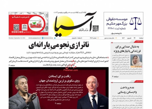 صفحه نخست روزنامه‌های امروز دوشنبه 26 شهریور 1403