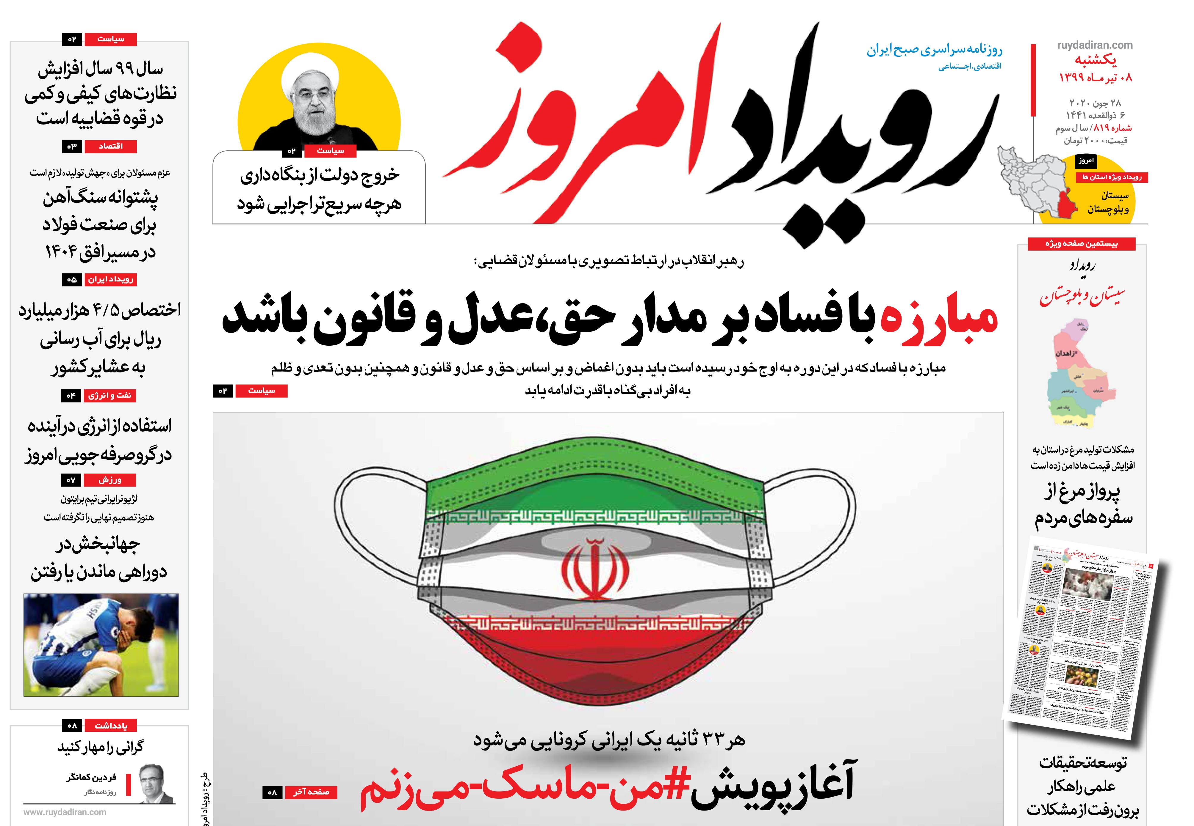 روزنامه رویداد امروز یکشنبه ۸ تیر ۱۳۹۹