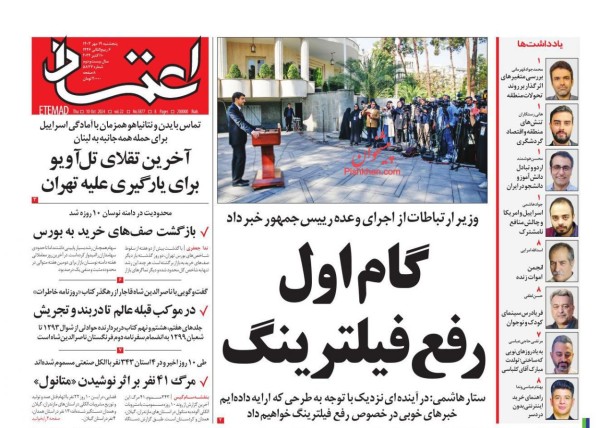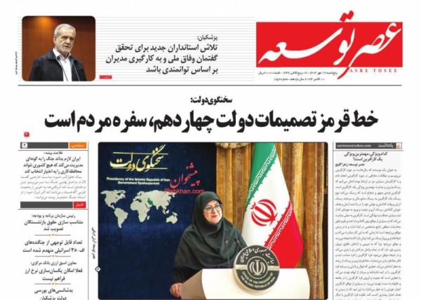 صفحه نخست روزنامه‌های امروز پنجشنبه 19 مهر 1403