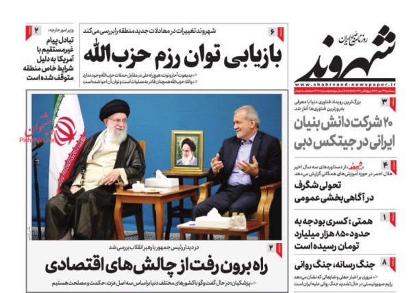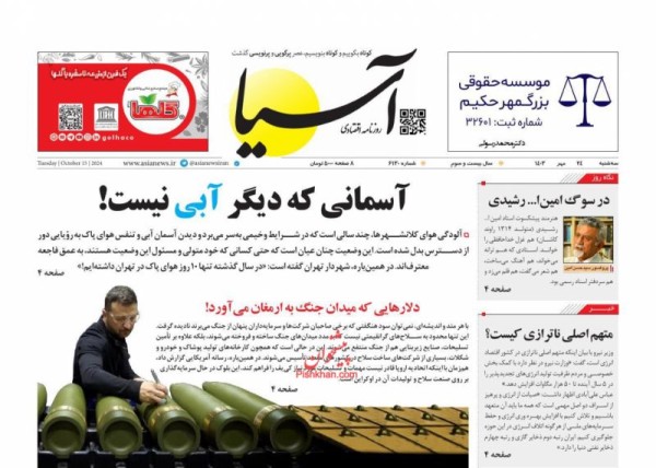 صفحه نخست روزنامه‌های امروز سه شنبه 24 مهر 1403