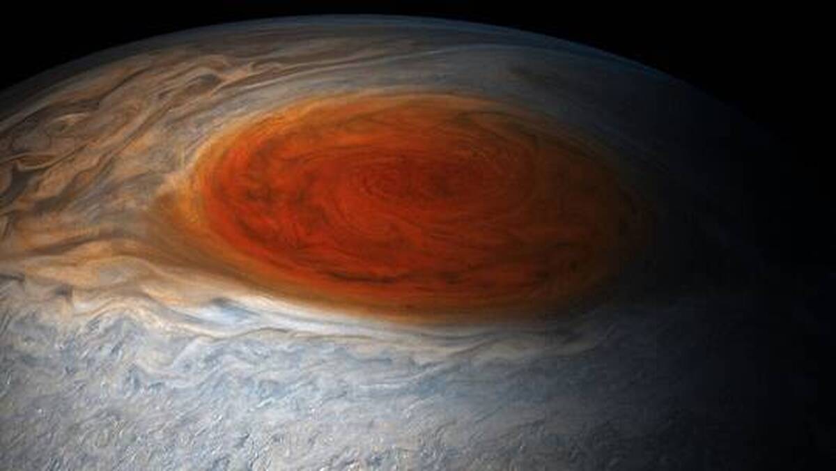 به گفته دانشمندان ناسا، لکه قرمز بزرگ در واقع یک طوفان در مشتری است که حداقل ۱۵۰ سال است که در حال چرخش بوده است. عرض این طوفان حدود ۱۶۳۵۰ کیلومتر است که معادل حدود ۱.۳ برابر عرض زمین است و تا فاصله ۱۰۰ کیلومتری زیر قله ابرها امتداد دارد.